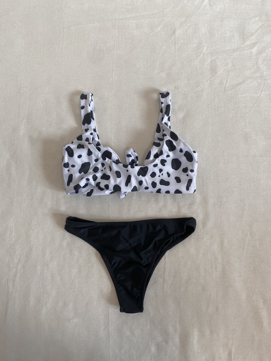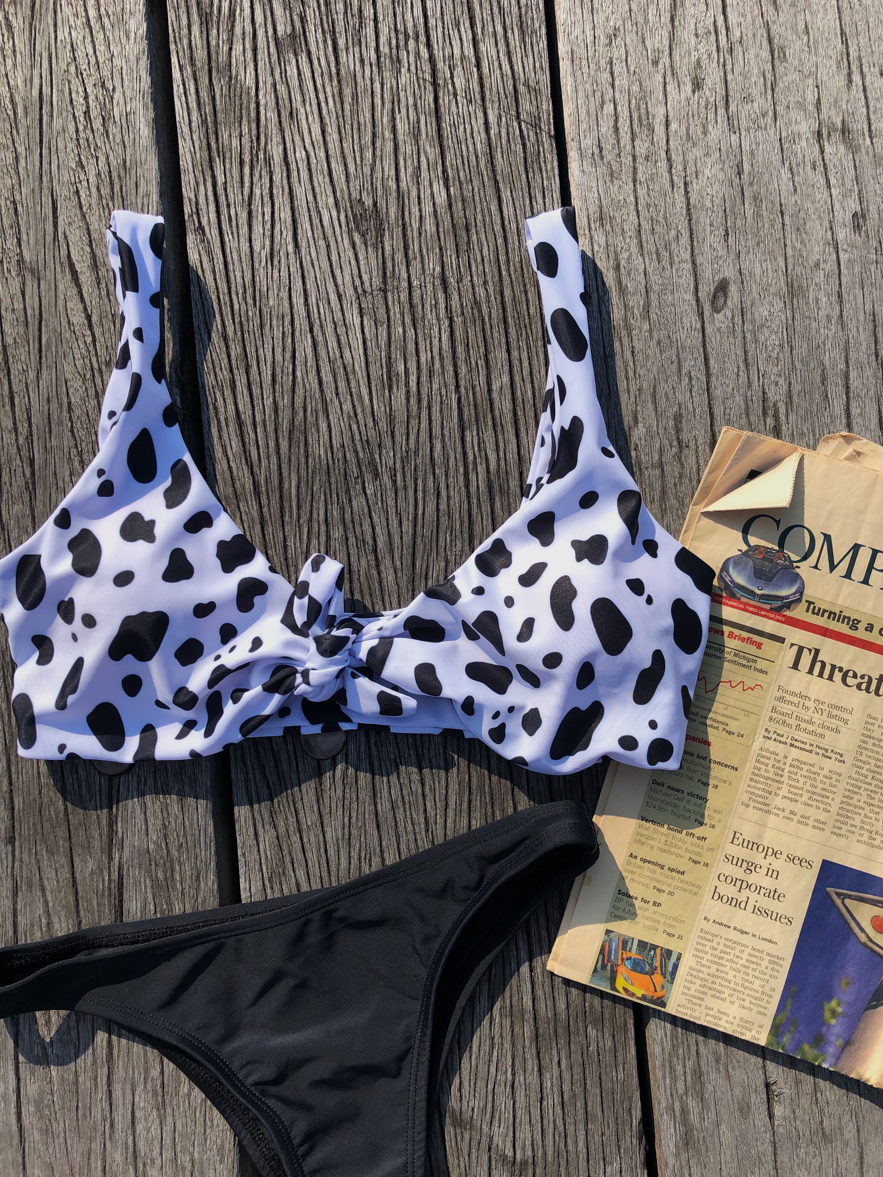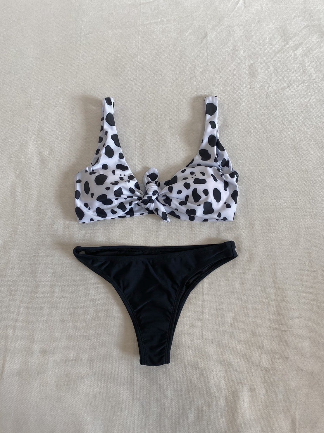 Front ribbon bikini【Dalmatian×Black】