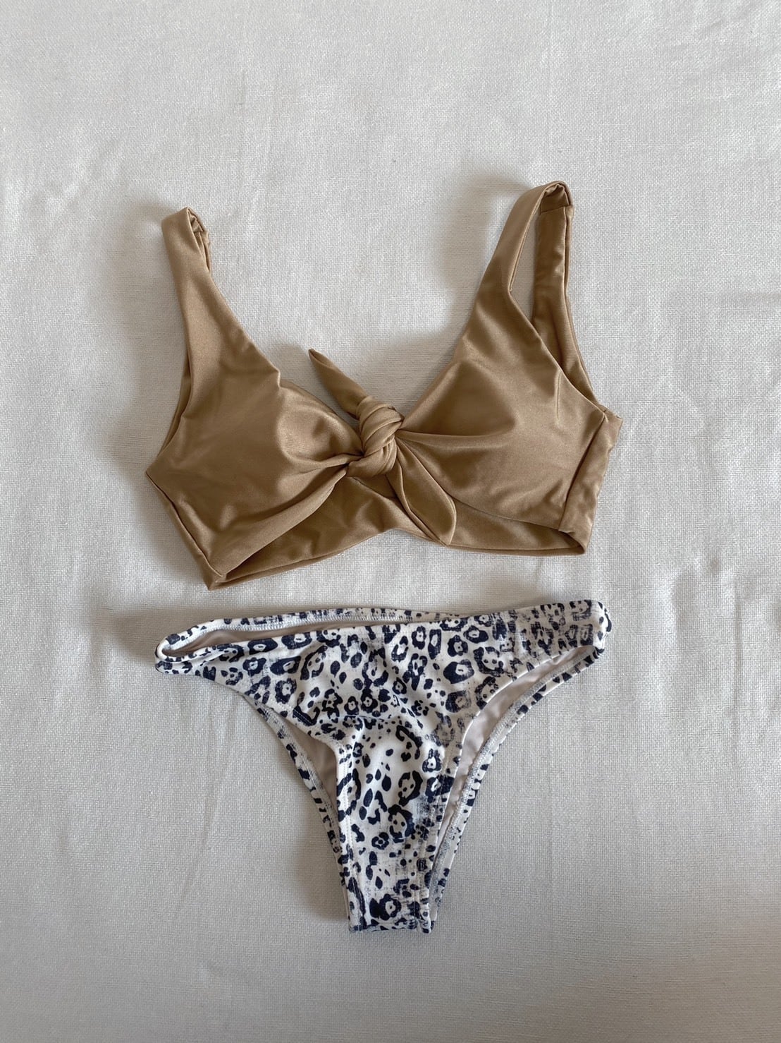 Front ribbon bikini【gold×leopard】
