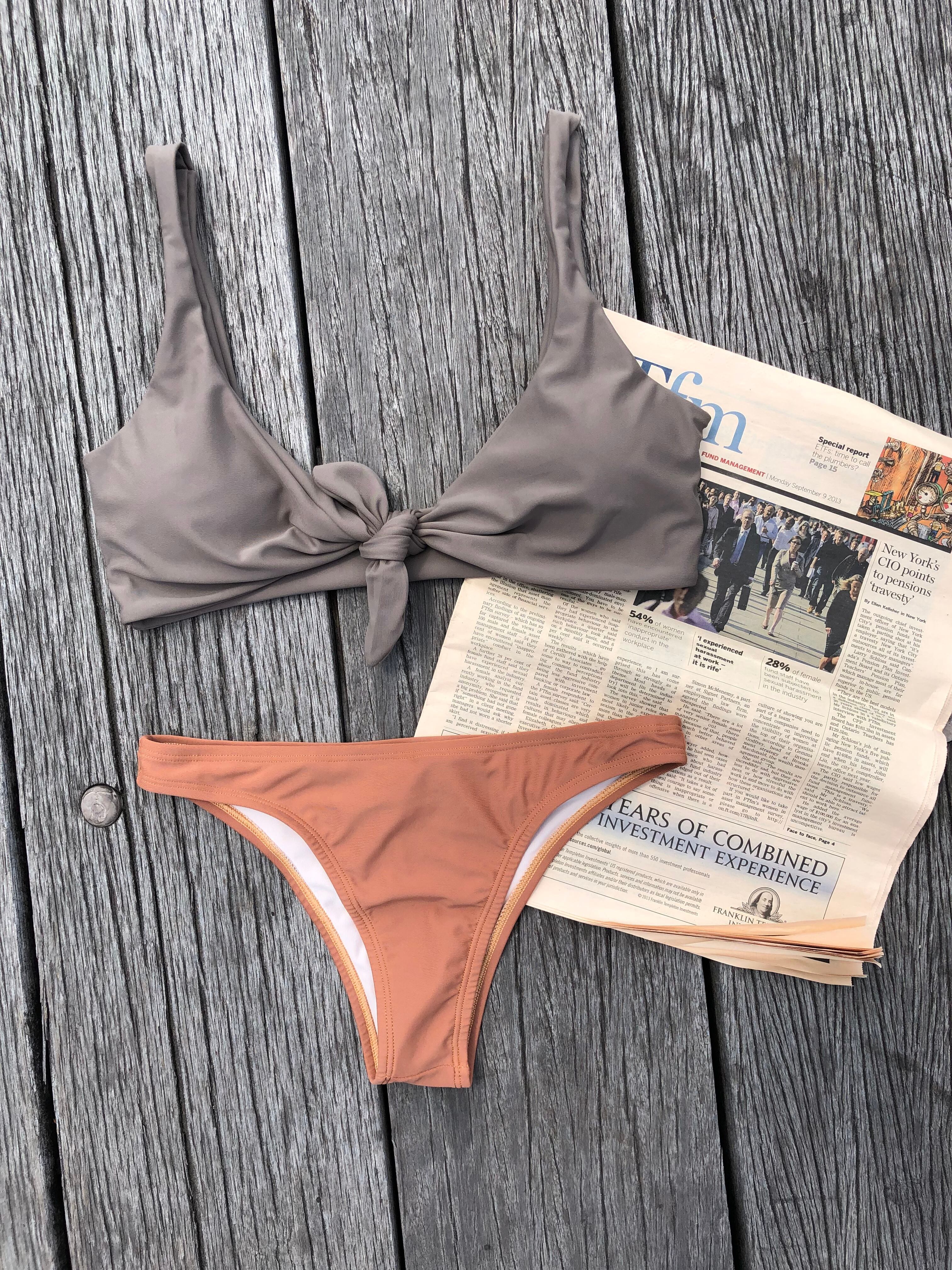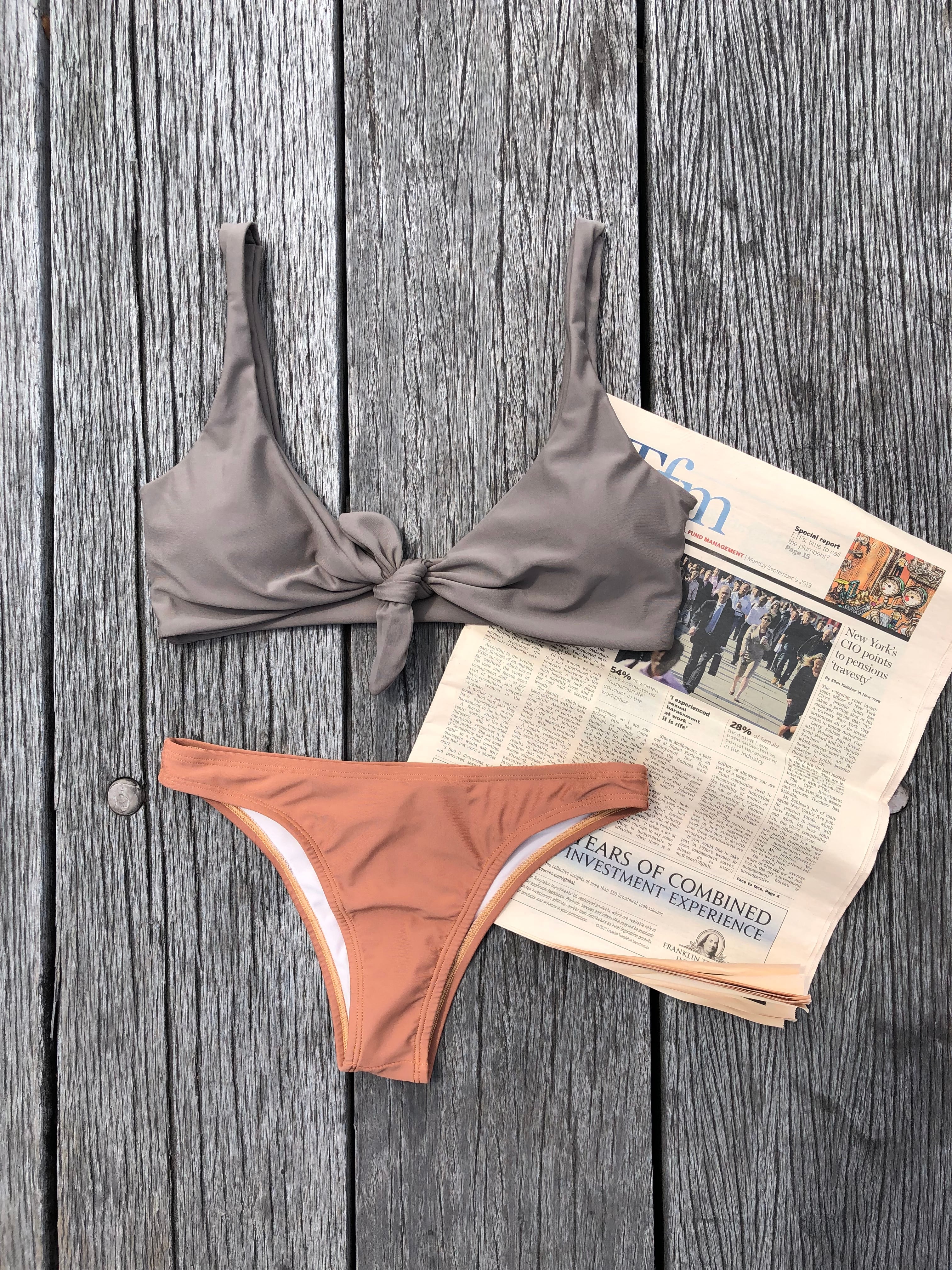 Front ribbon bikini【sand gray×sand orange】