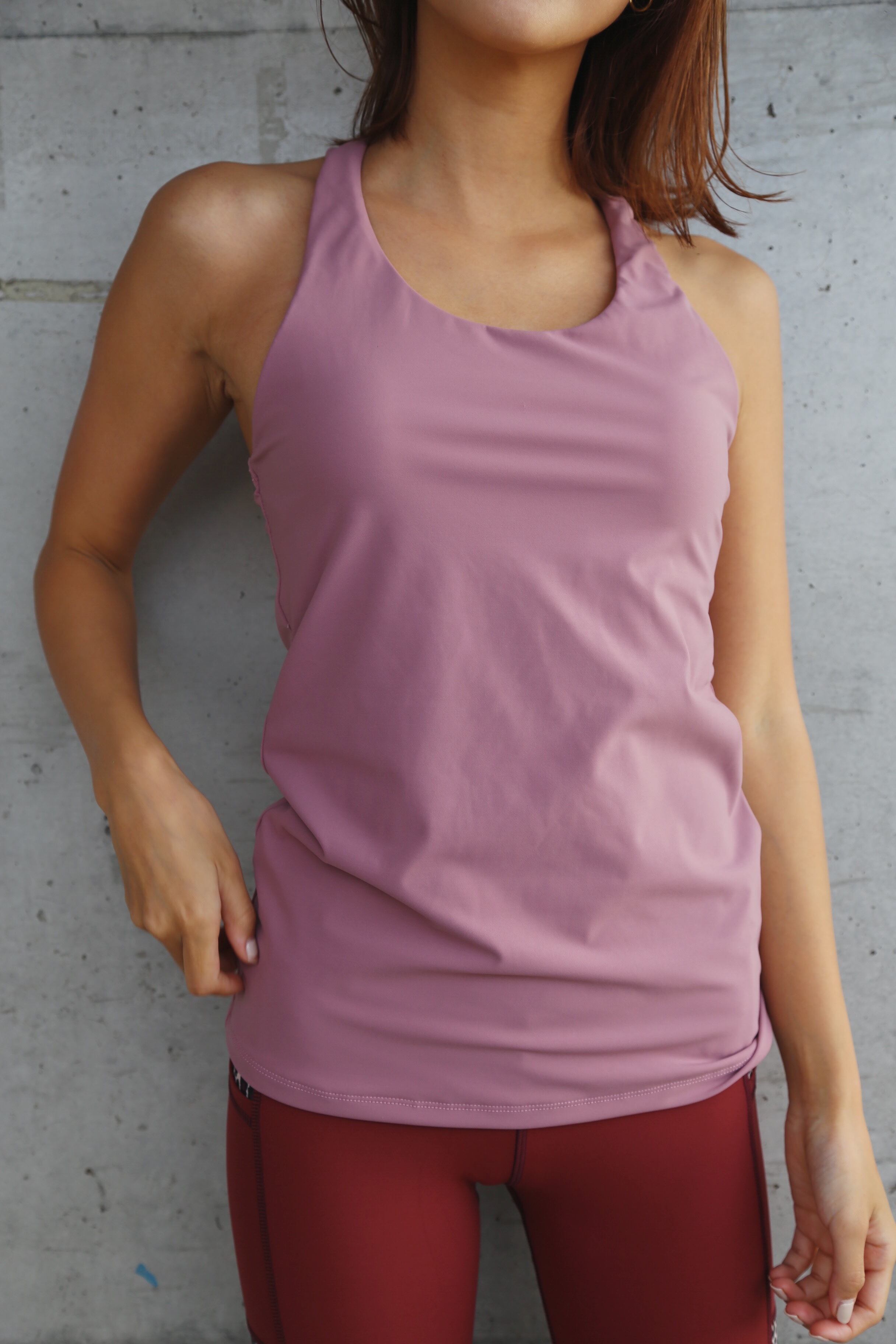 【fitness wear】cross full tops「sand pink×White」