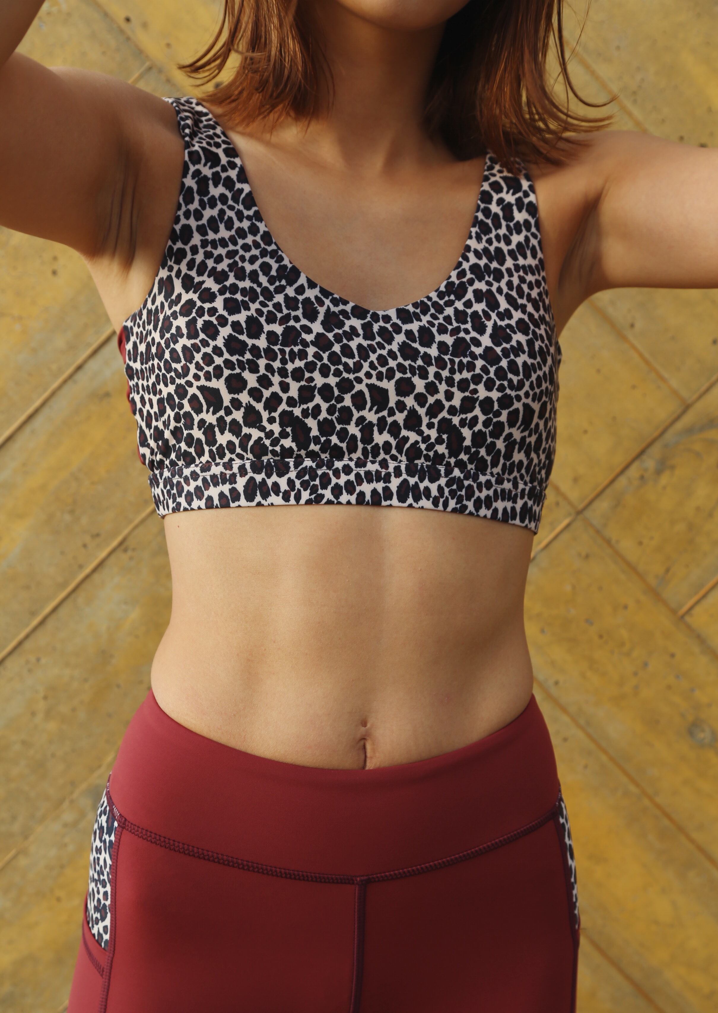 【fitness wear】twist bra top「leopard×wine」