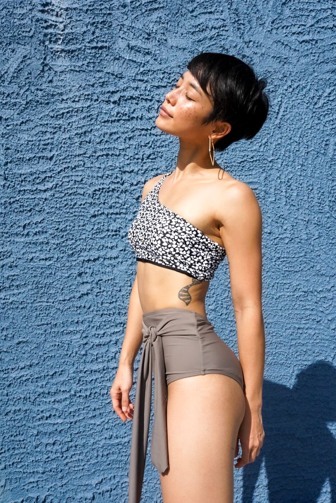 one shoulder high-waist pants【sand gray】