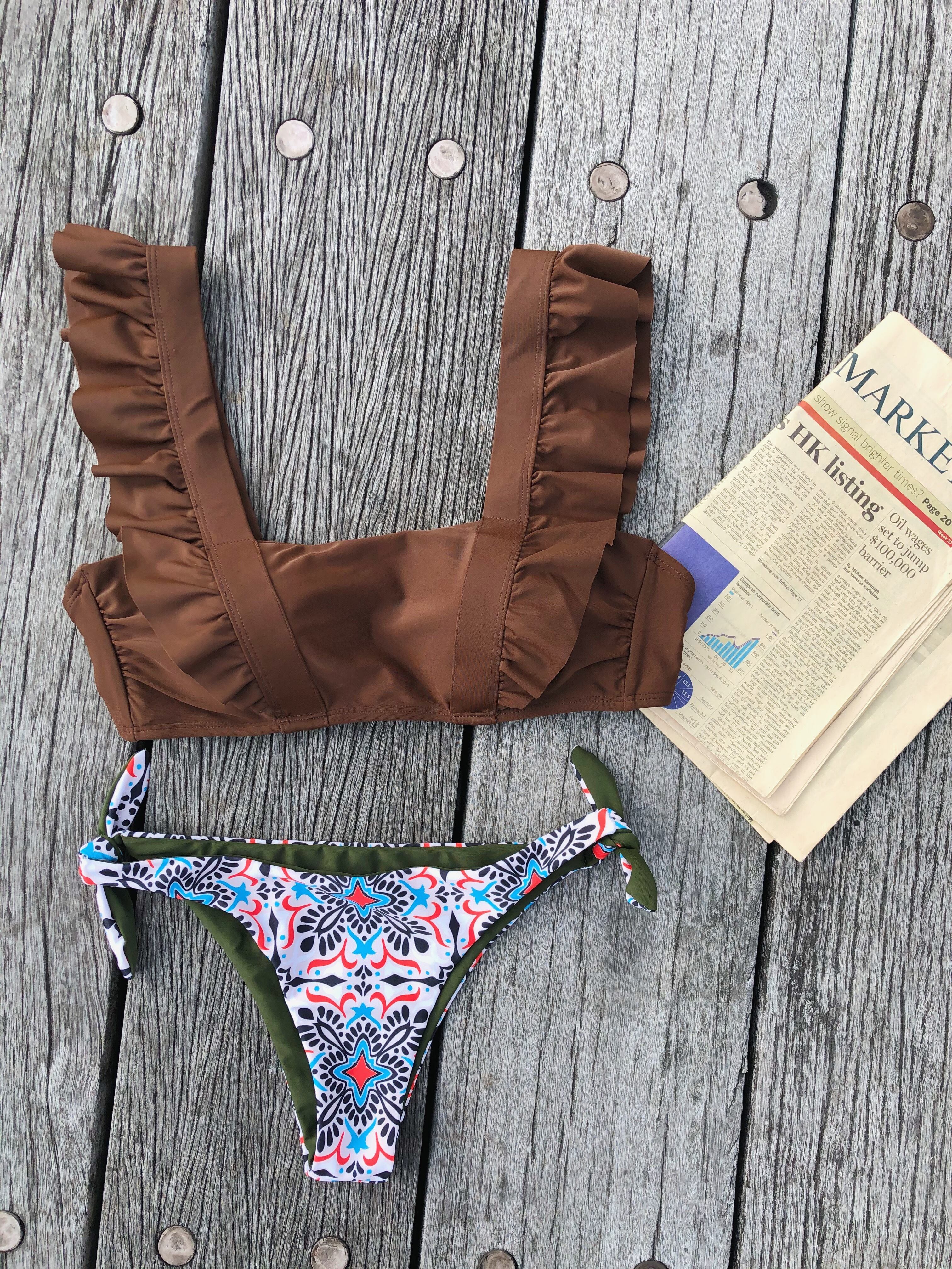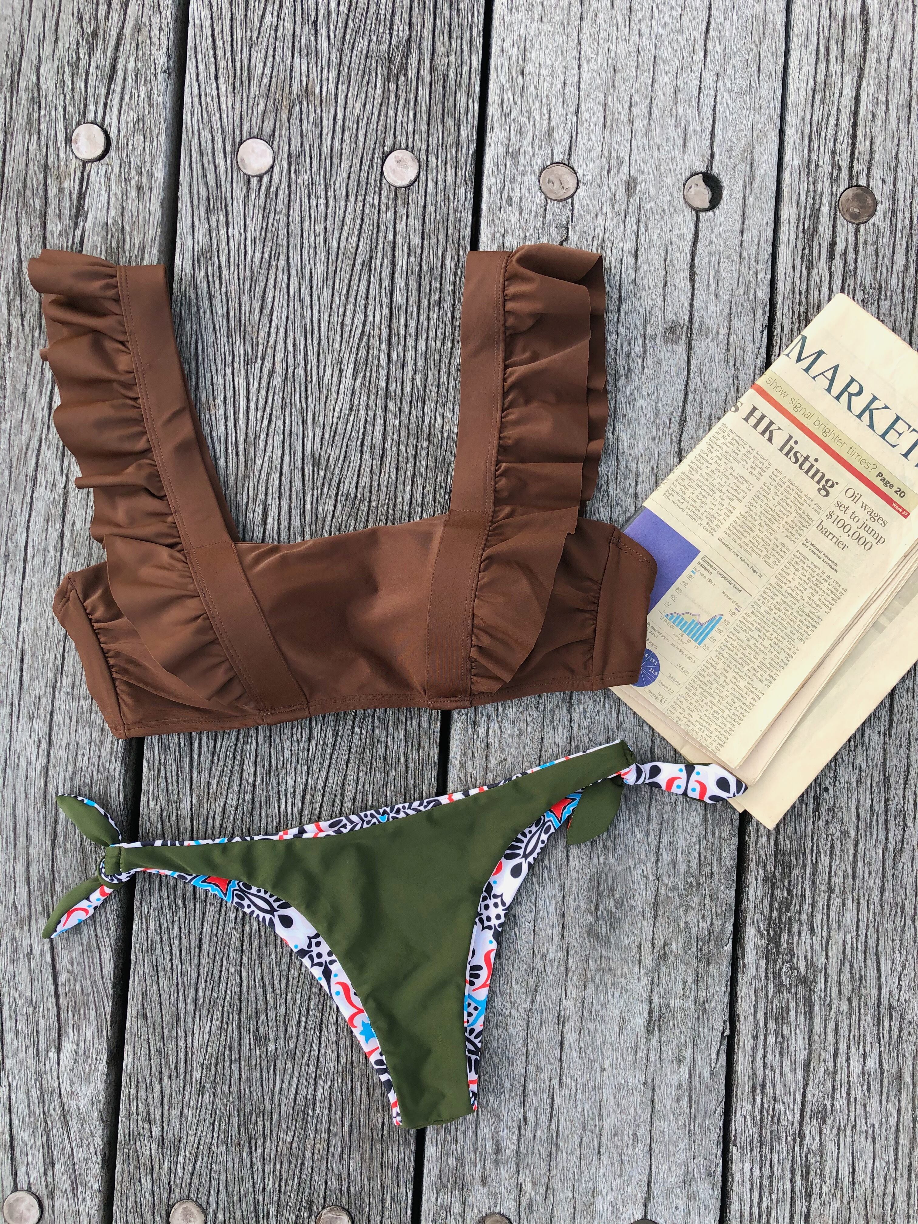 Big shoulder up reversible pants bikini【brown】