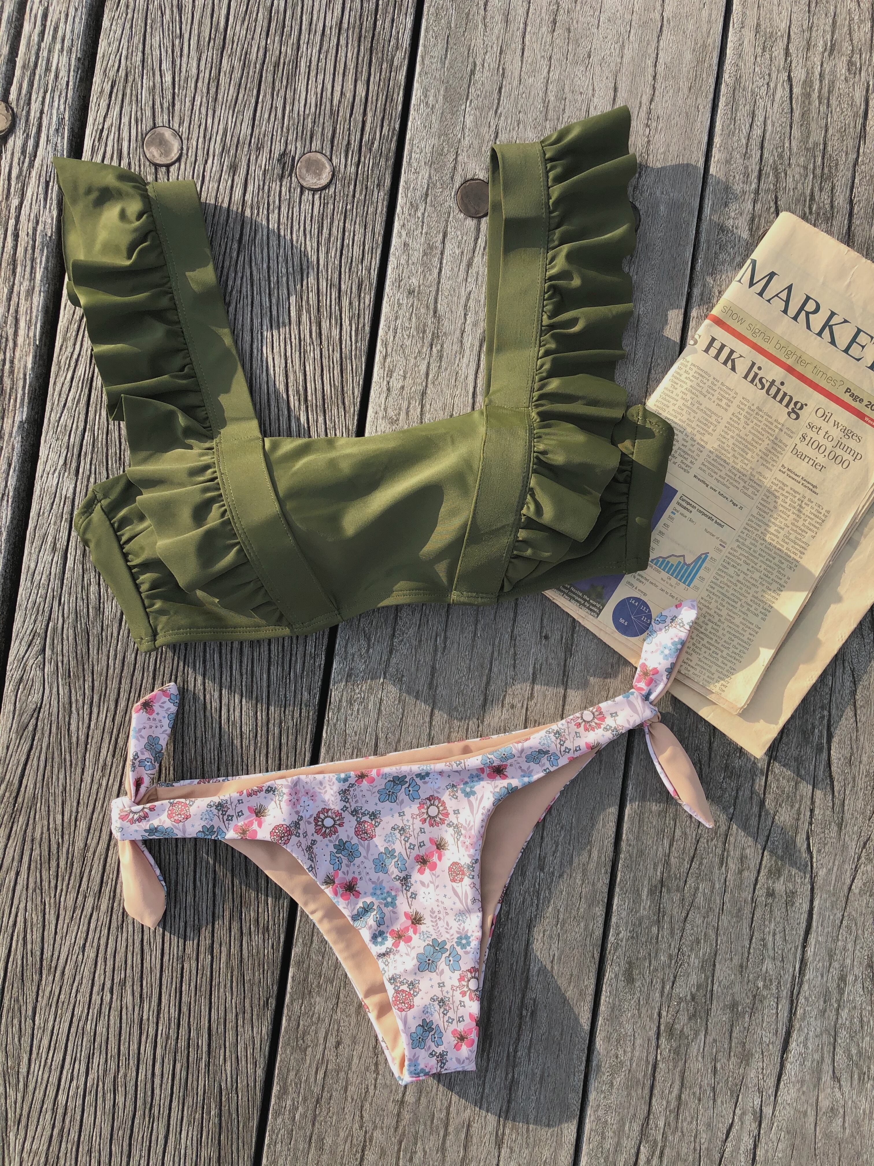 Big shoulder up reversible pants bikini【khaki】