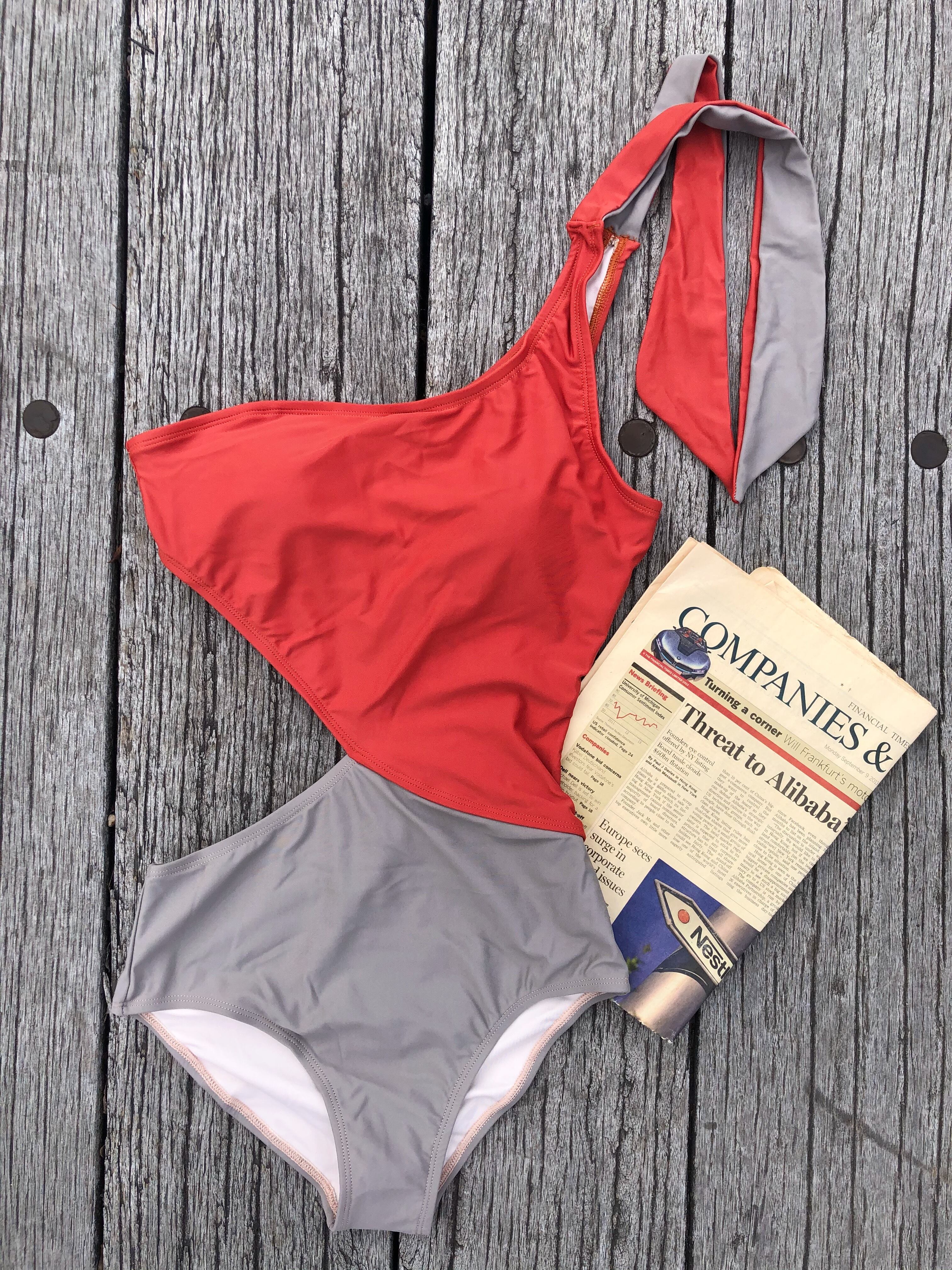 one shoulder monokini bikini【Cherry×gray】