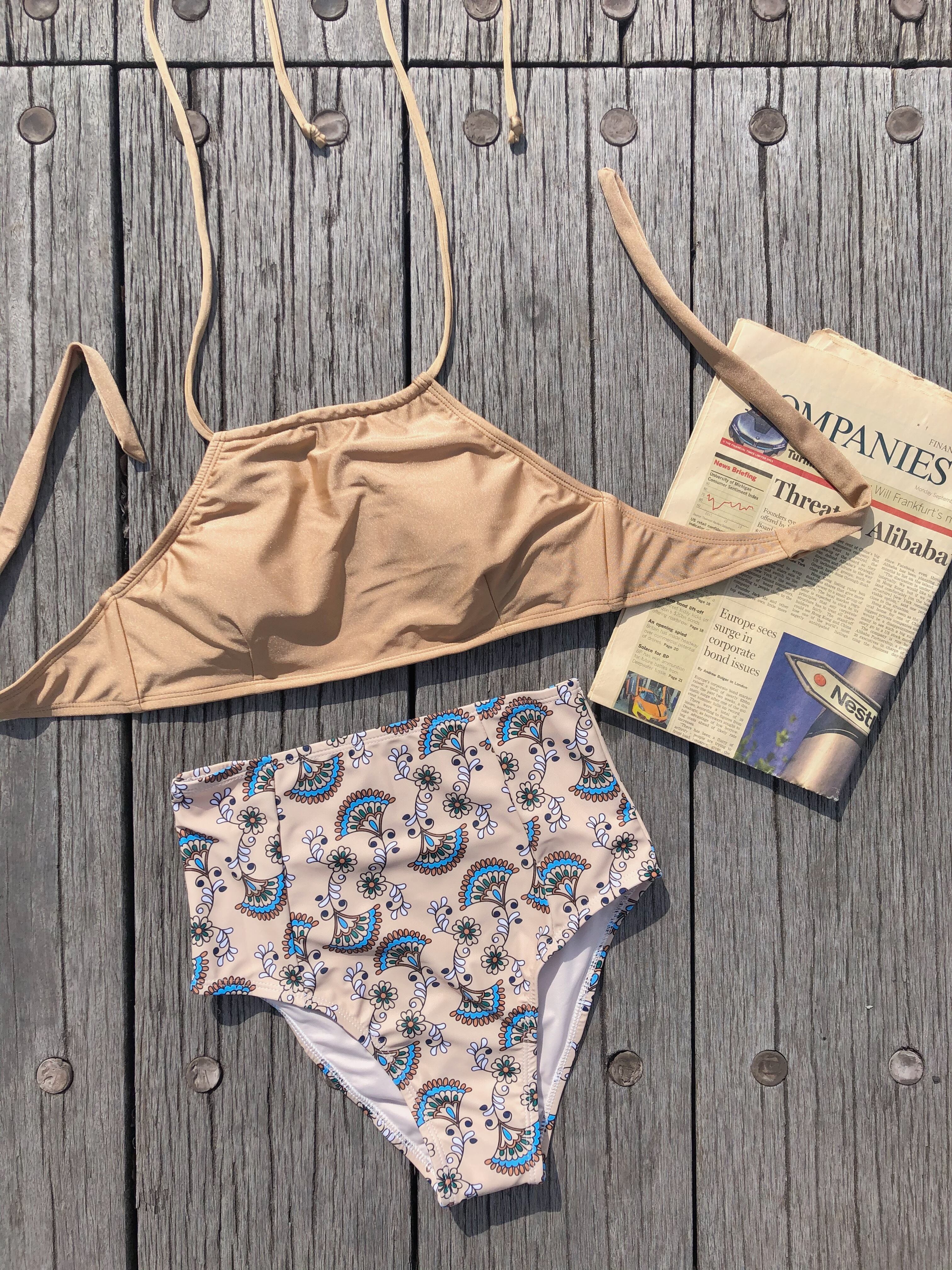 halter neck high waist bikini【gold】