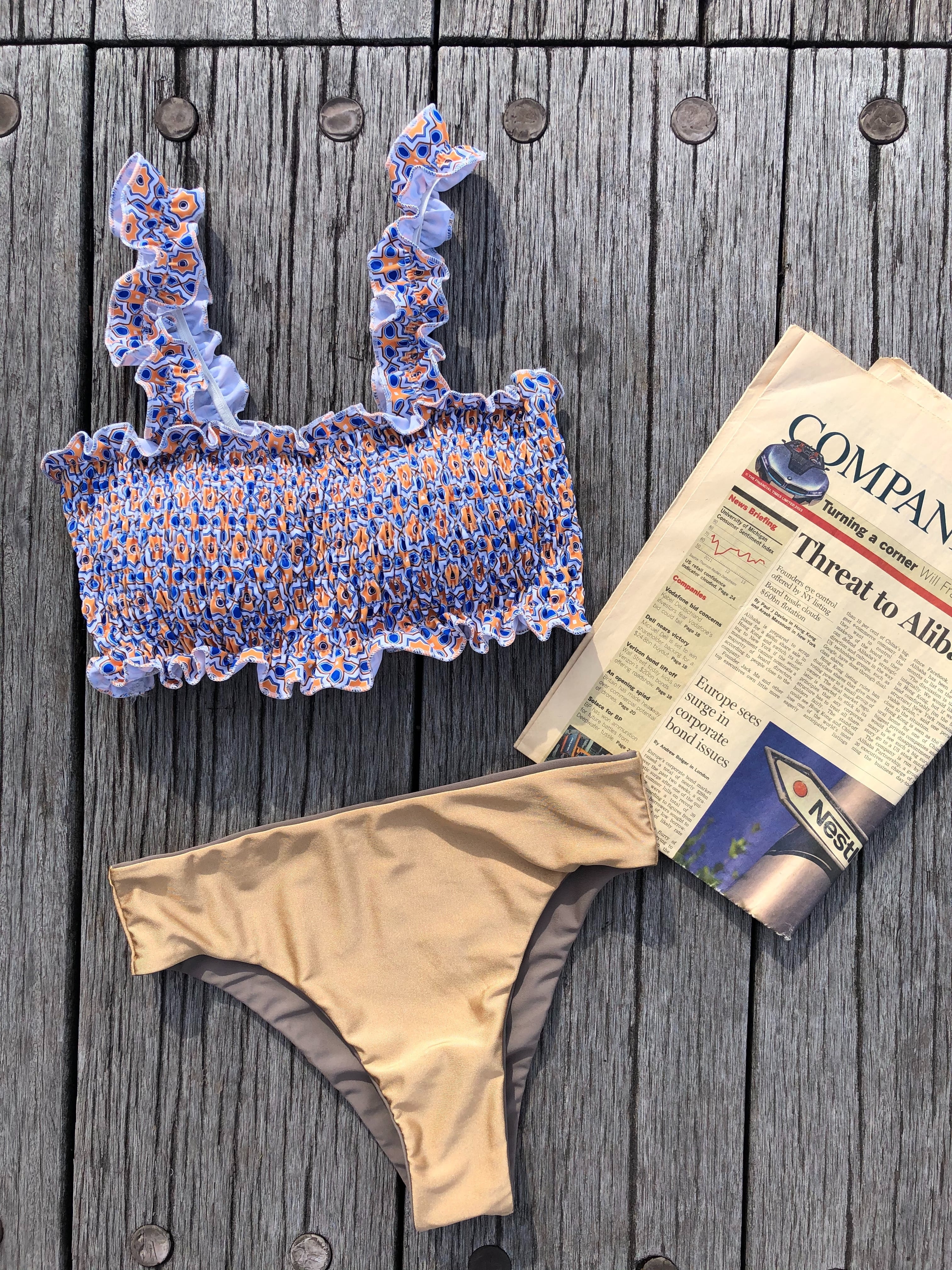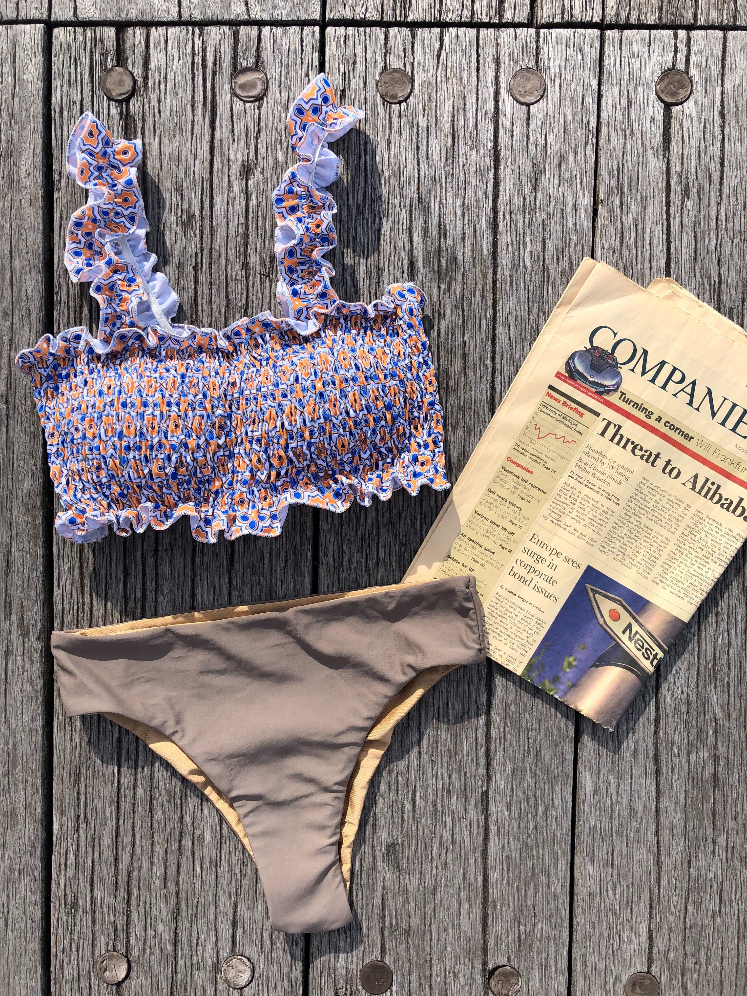 frill up shirring reversible bikini【tile】