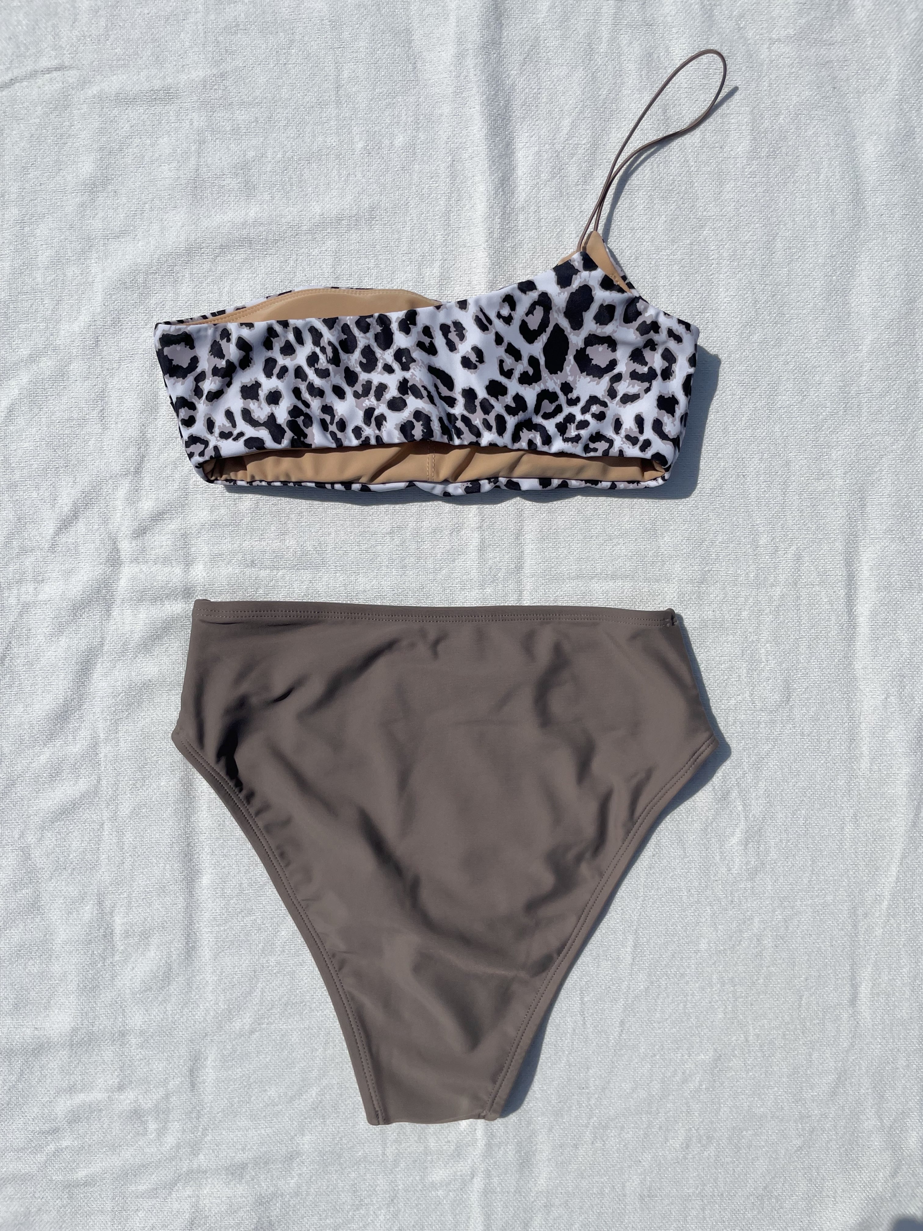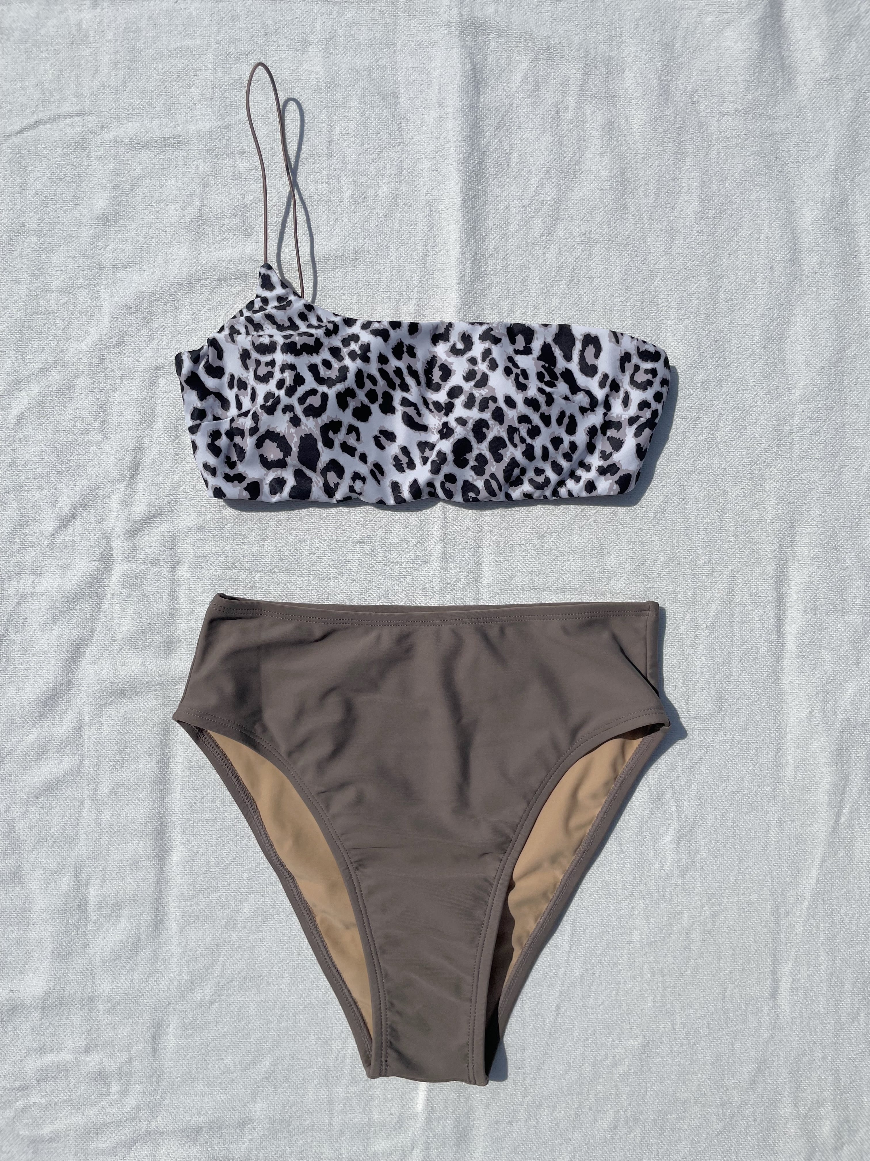 pipe one shoulder high waist bikini【leopard×sand grey】