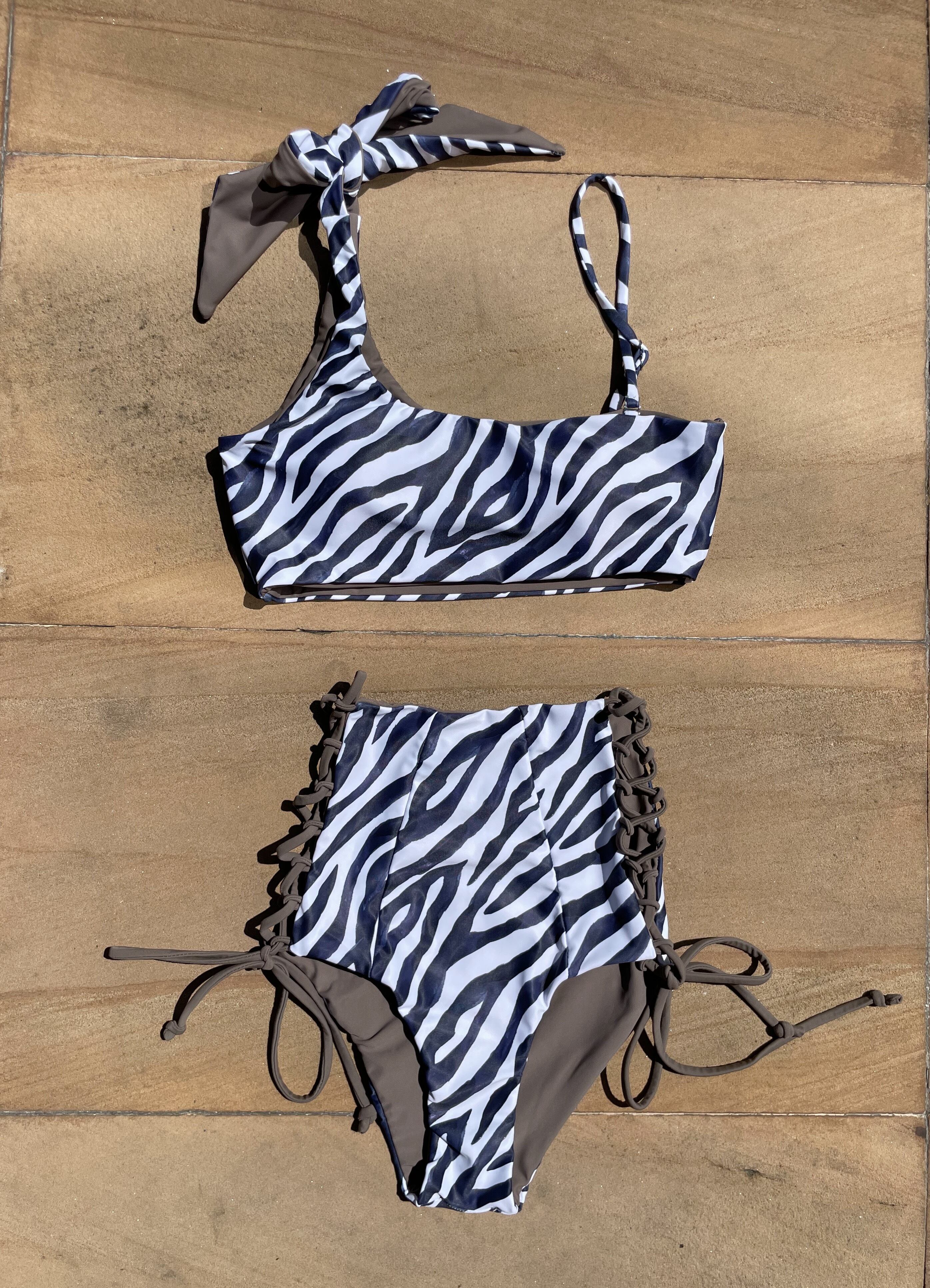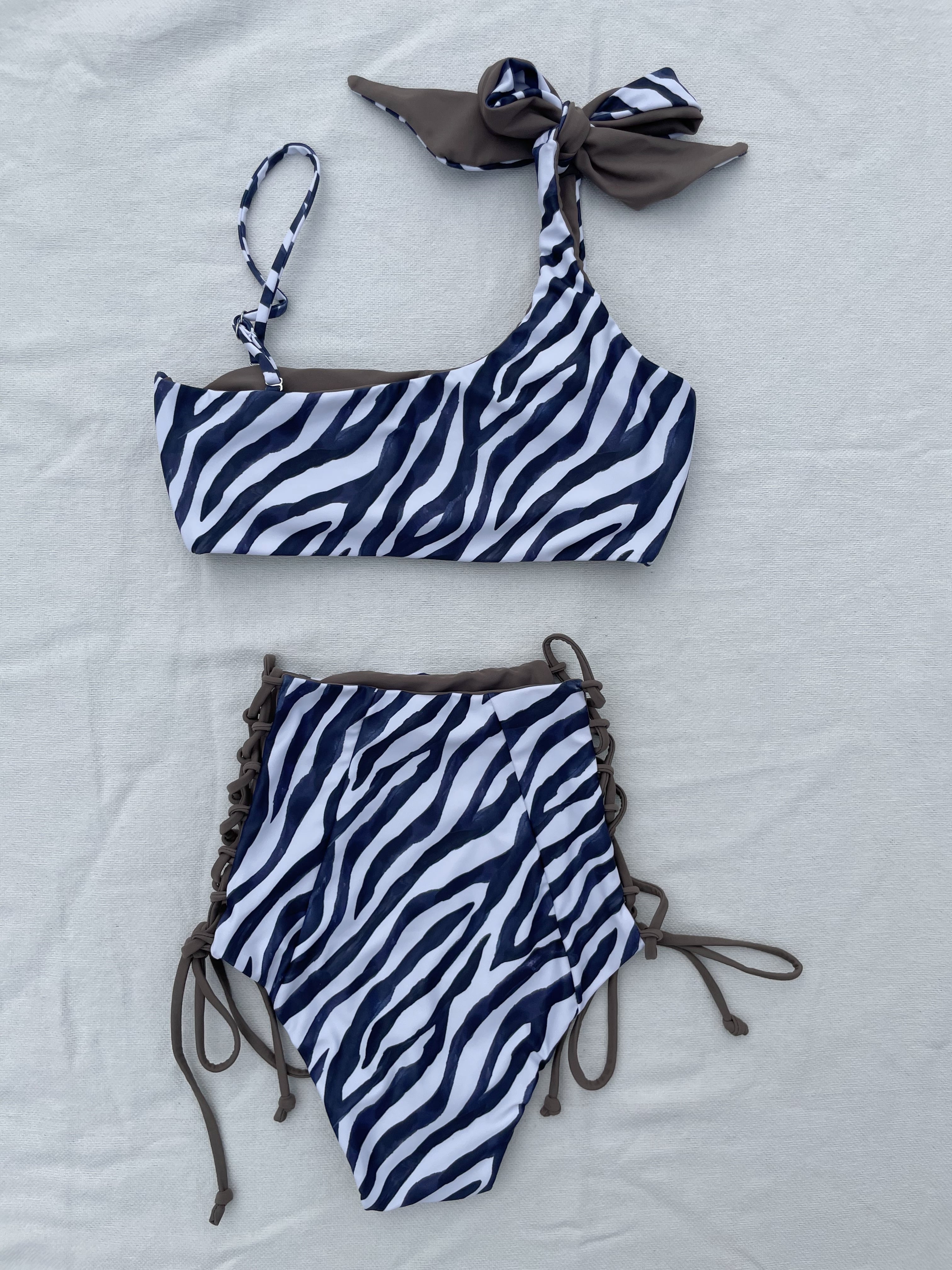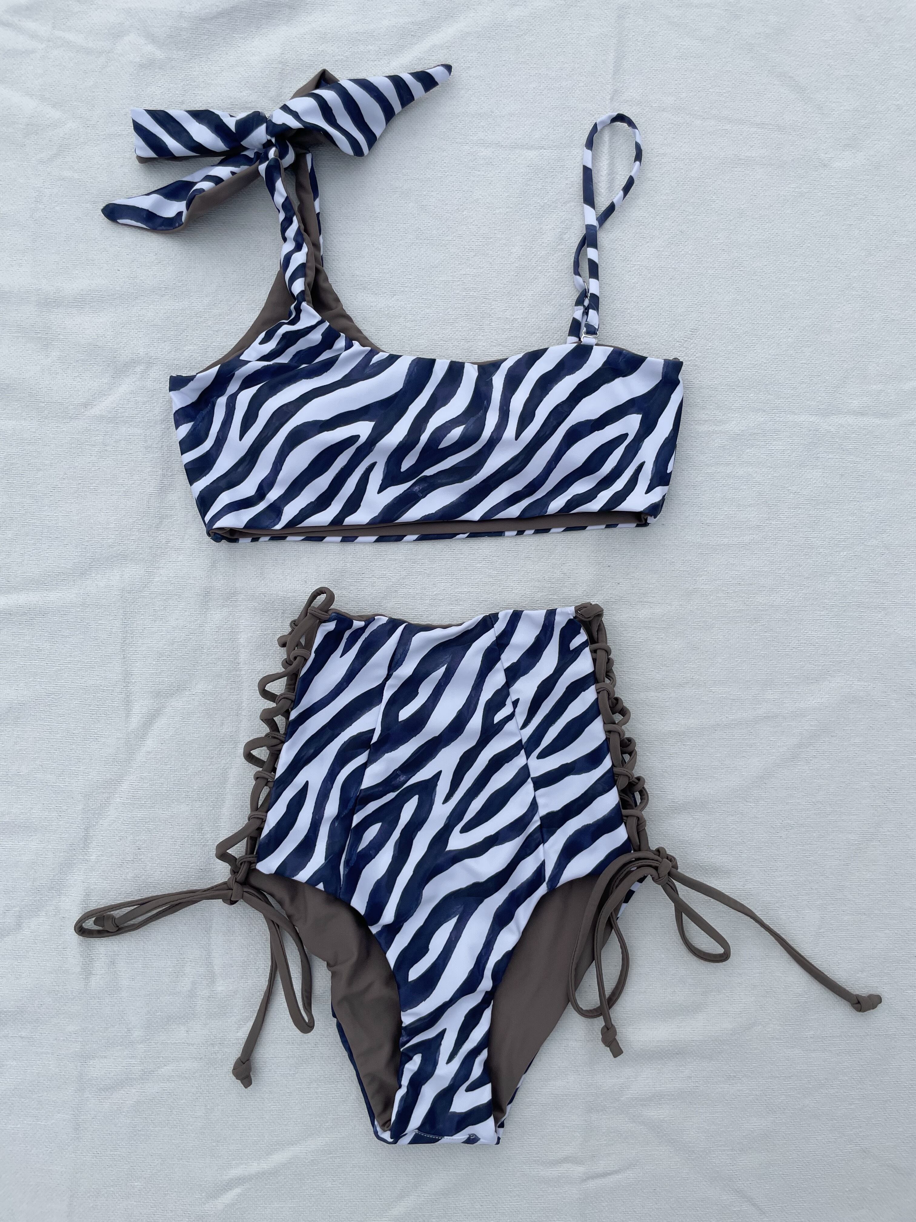 MILIMILI-one shoulder high waist reversible bikini【smoky zebra×sand gray】