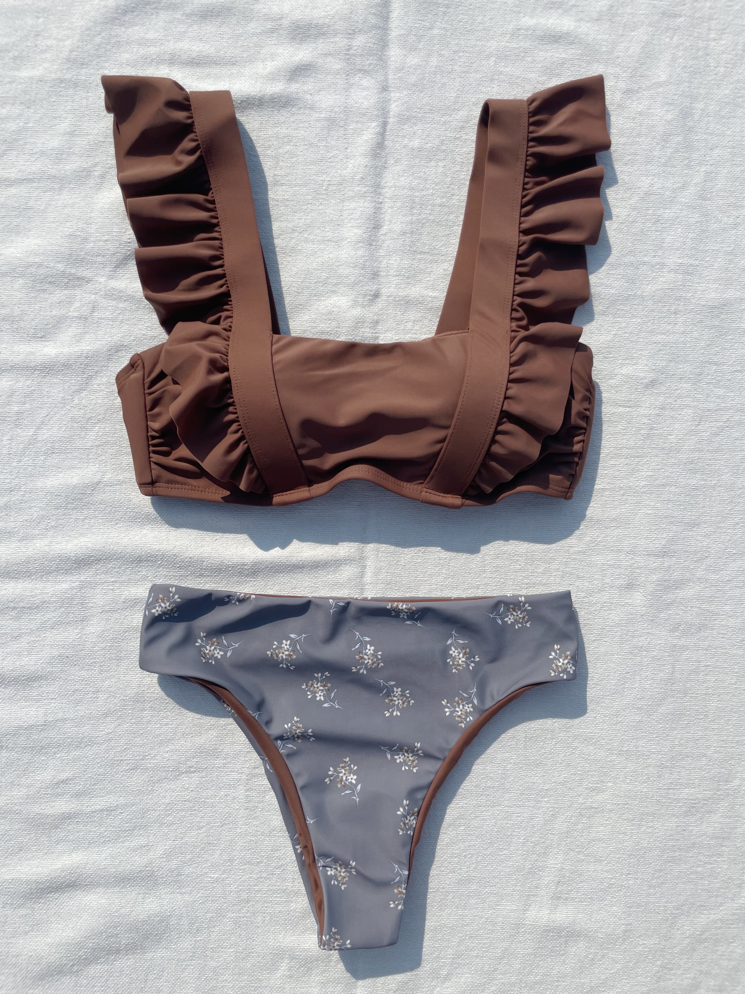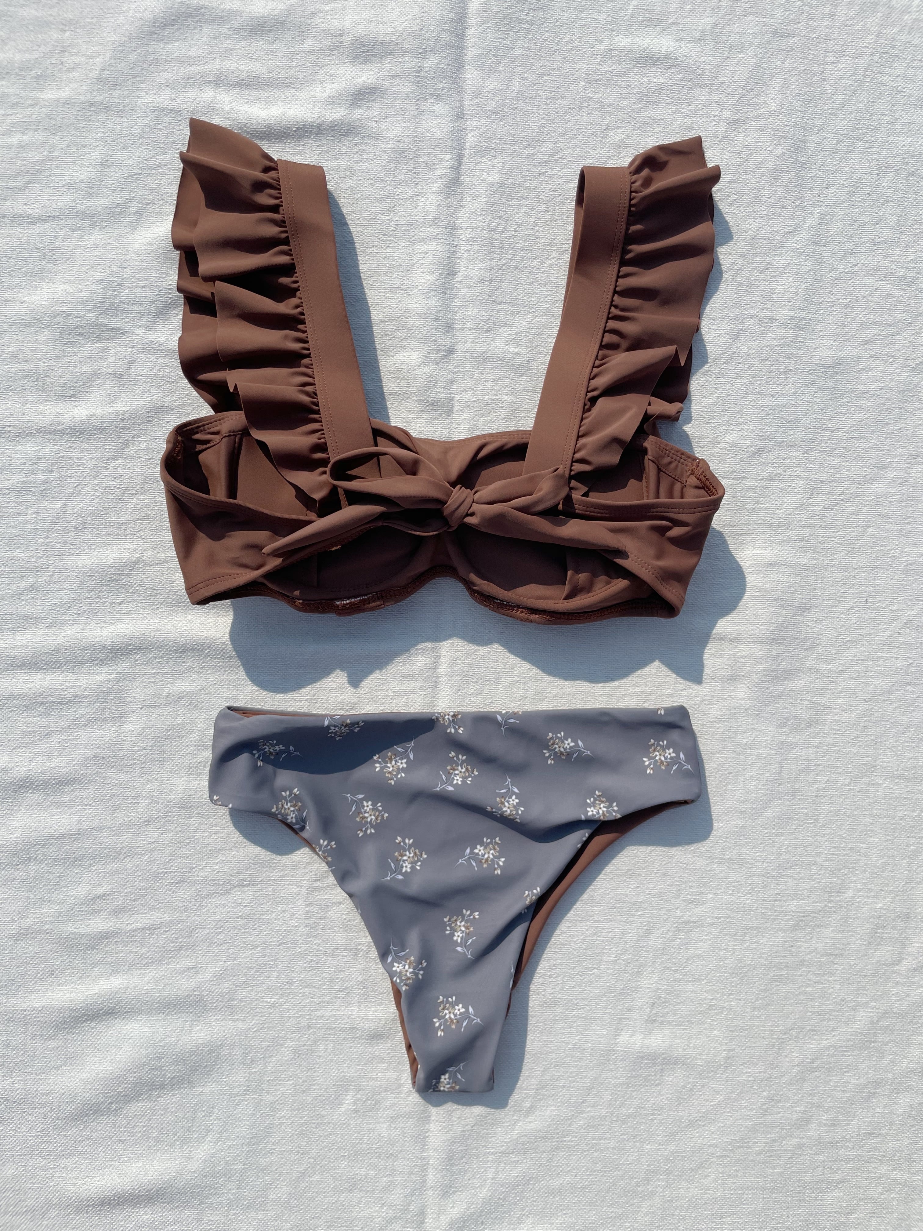Big shoulder up reversible pants bikini【apricot×smoky Daisy】