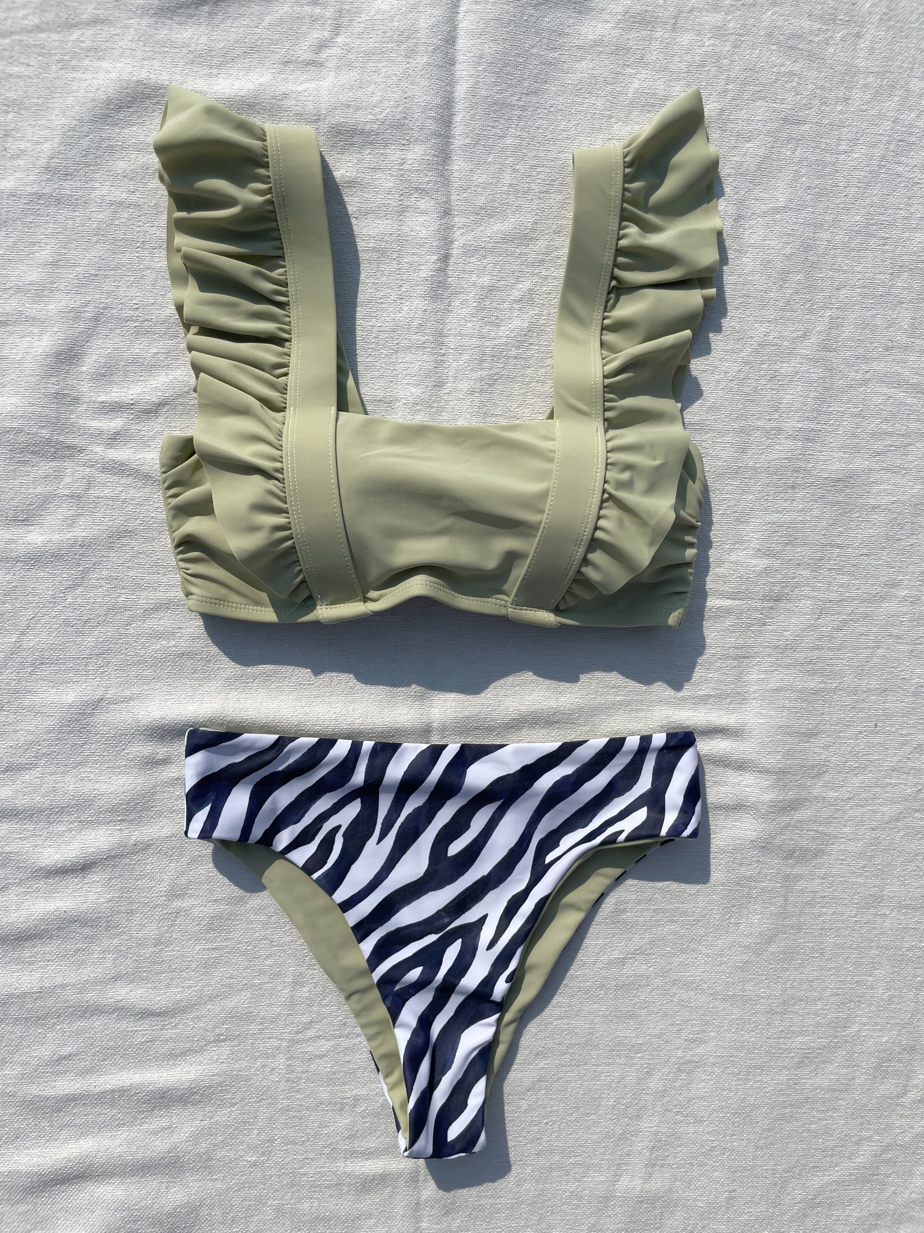 Big shoulder up reversible pants bikini【pistacchio×smoky zebra】