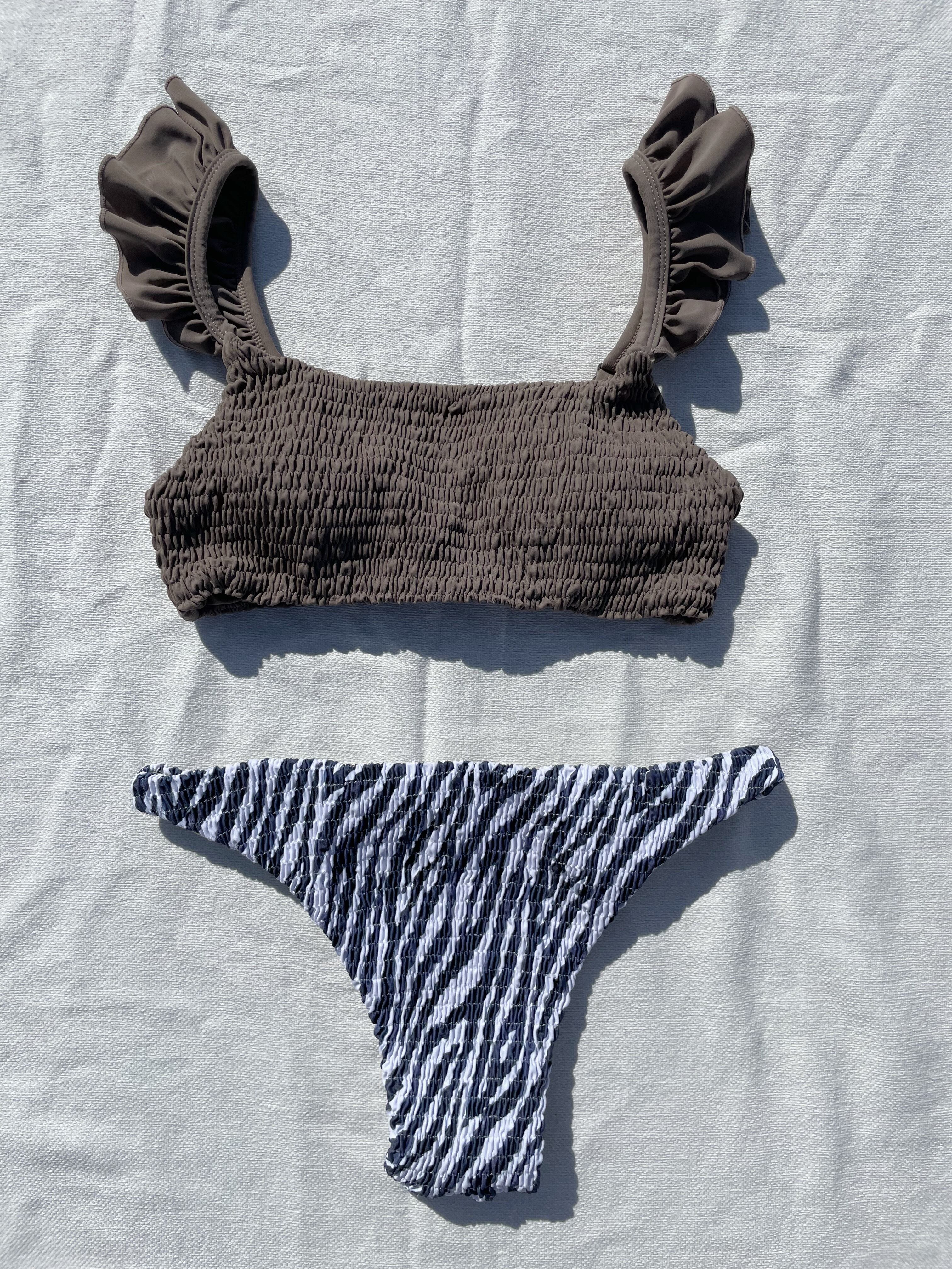 shirring frill bikini【moca× smoky zebra】