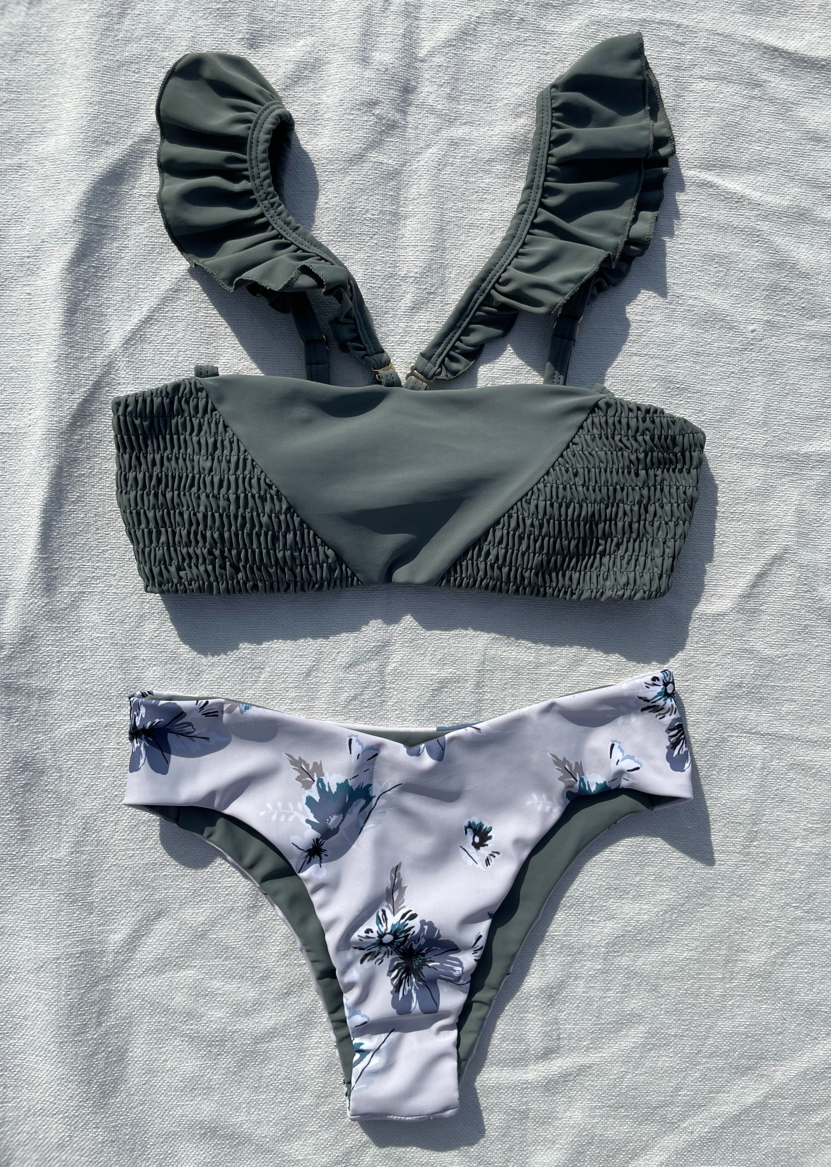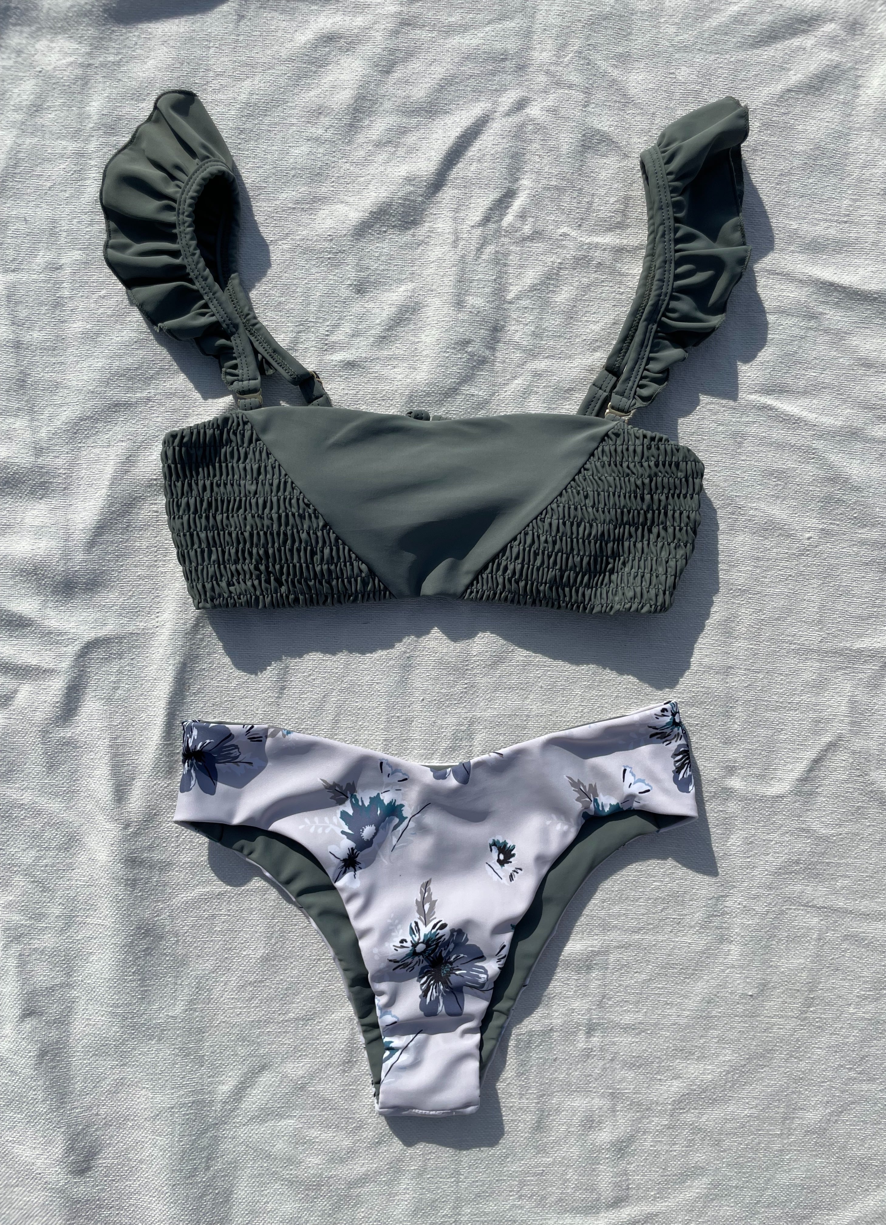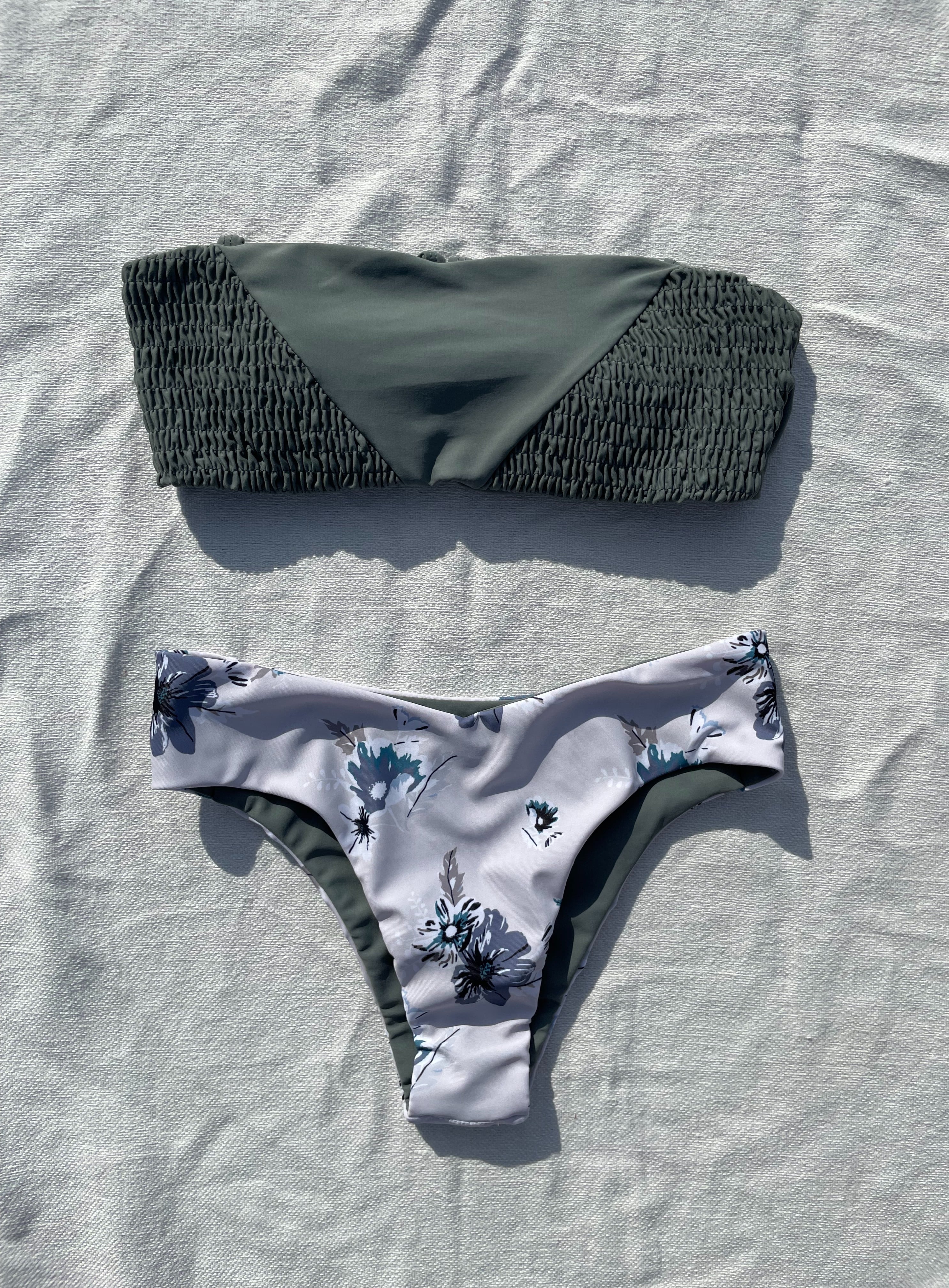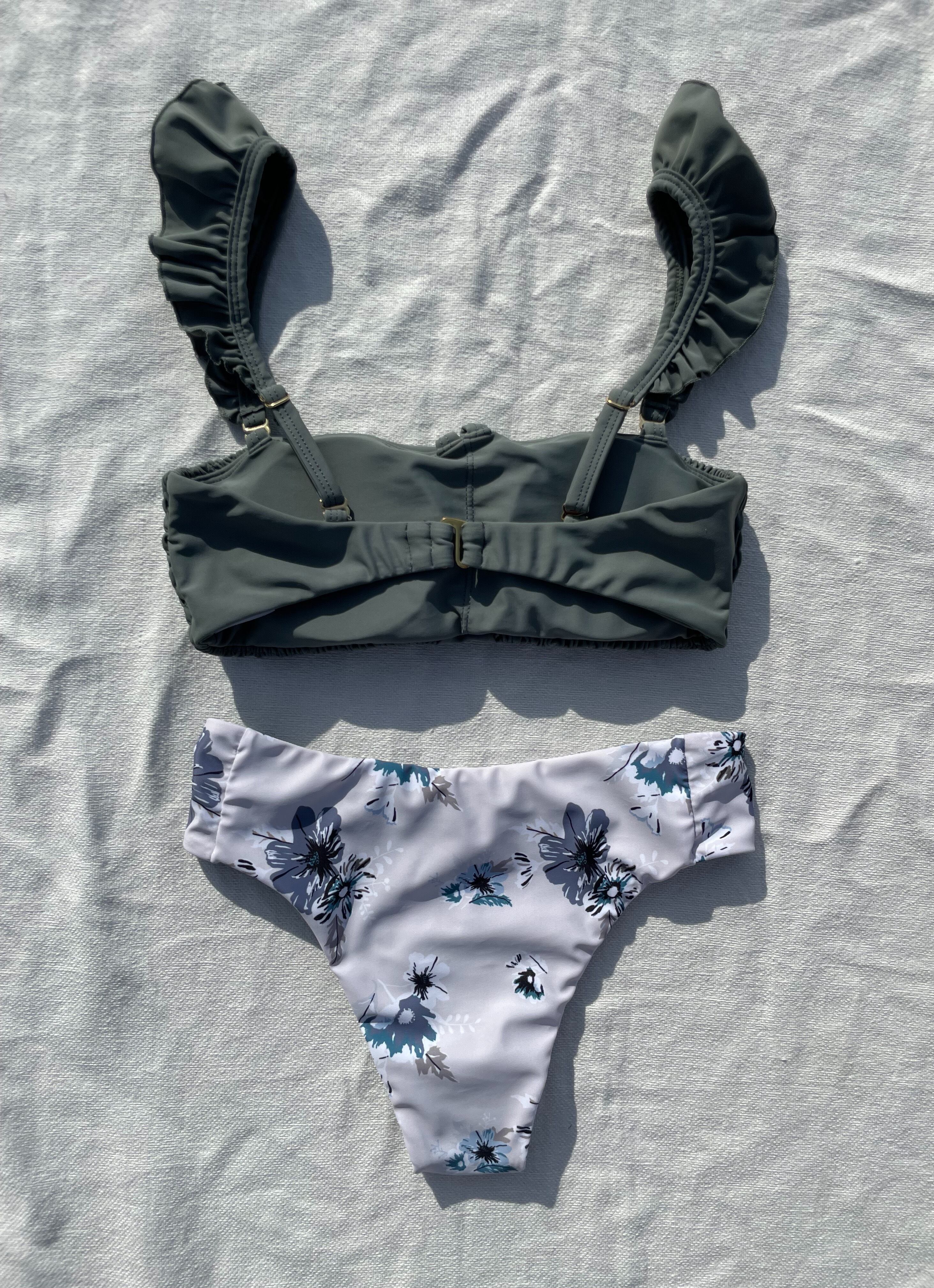 shirring 3way bikini【Blue gray×kush flower】
