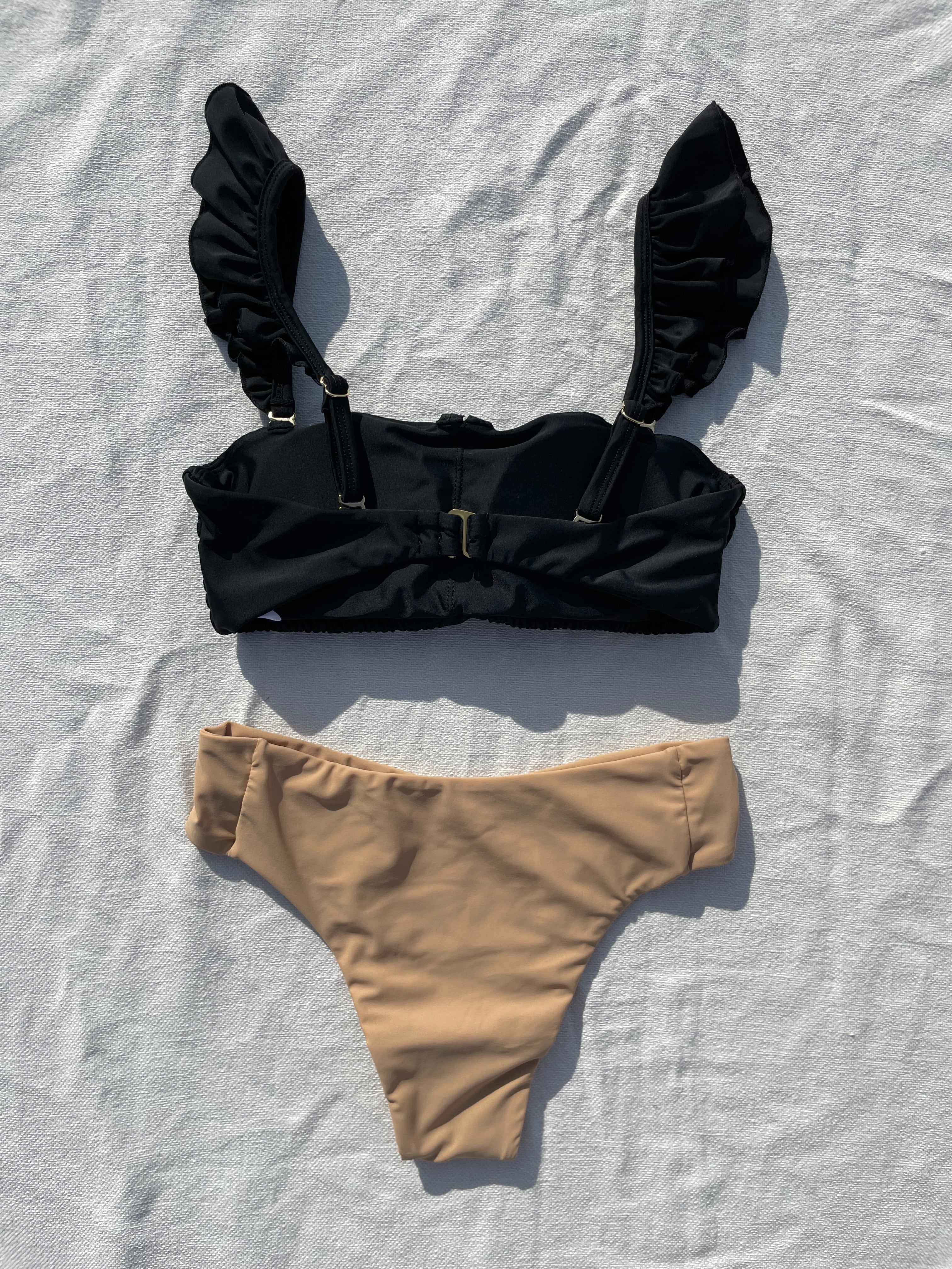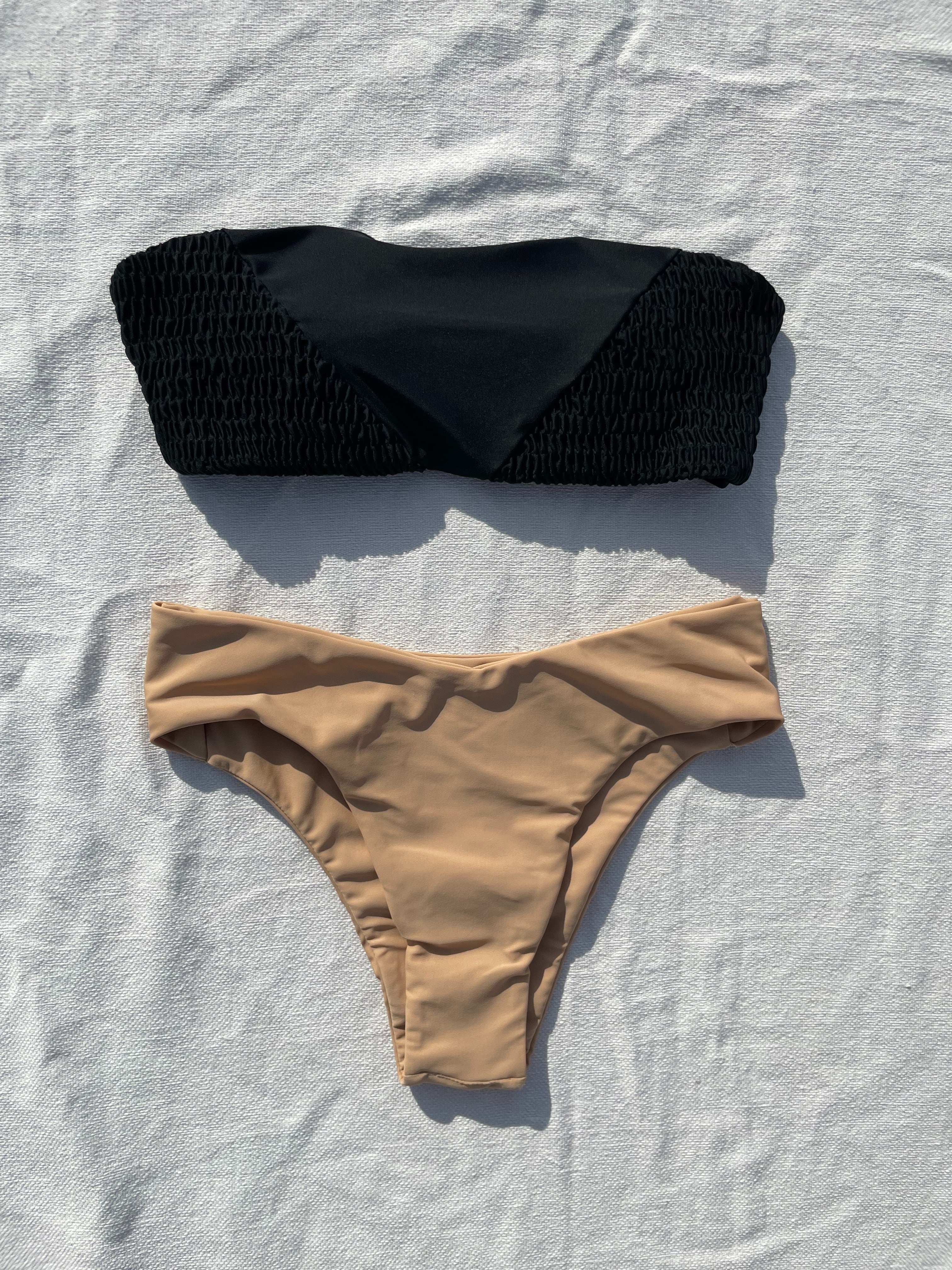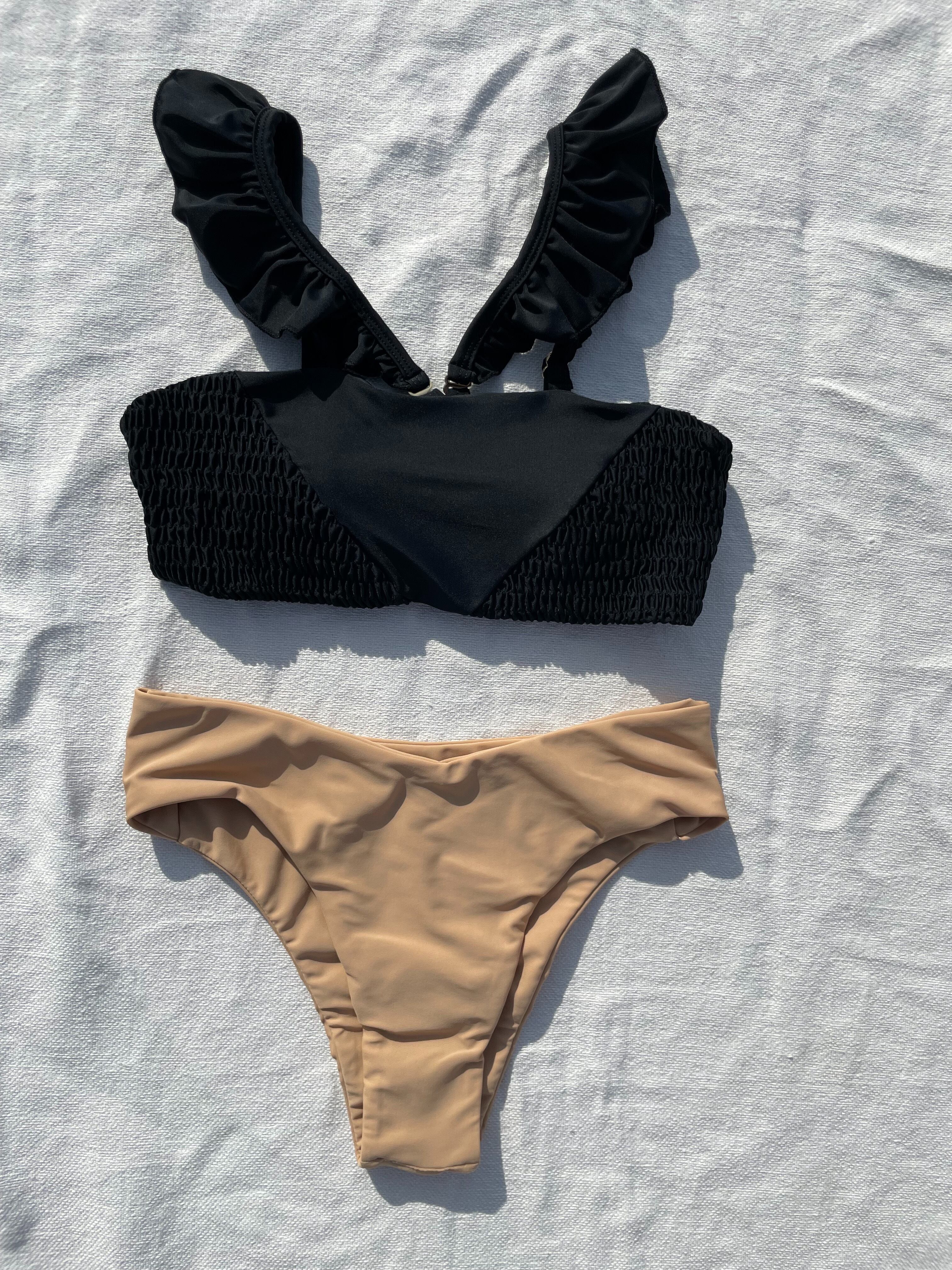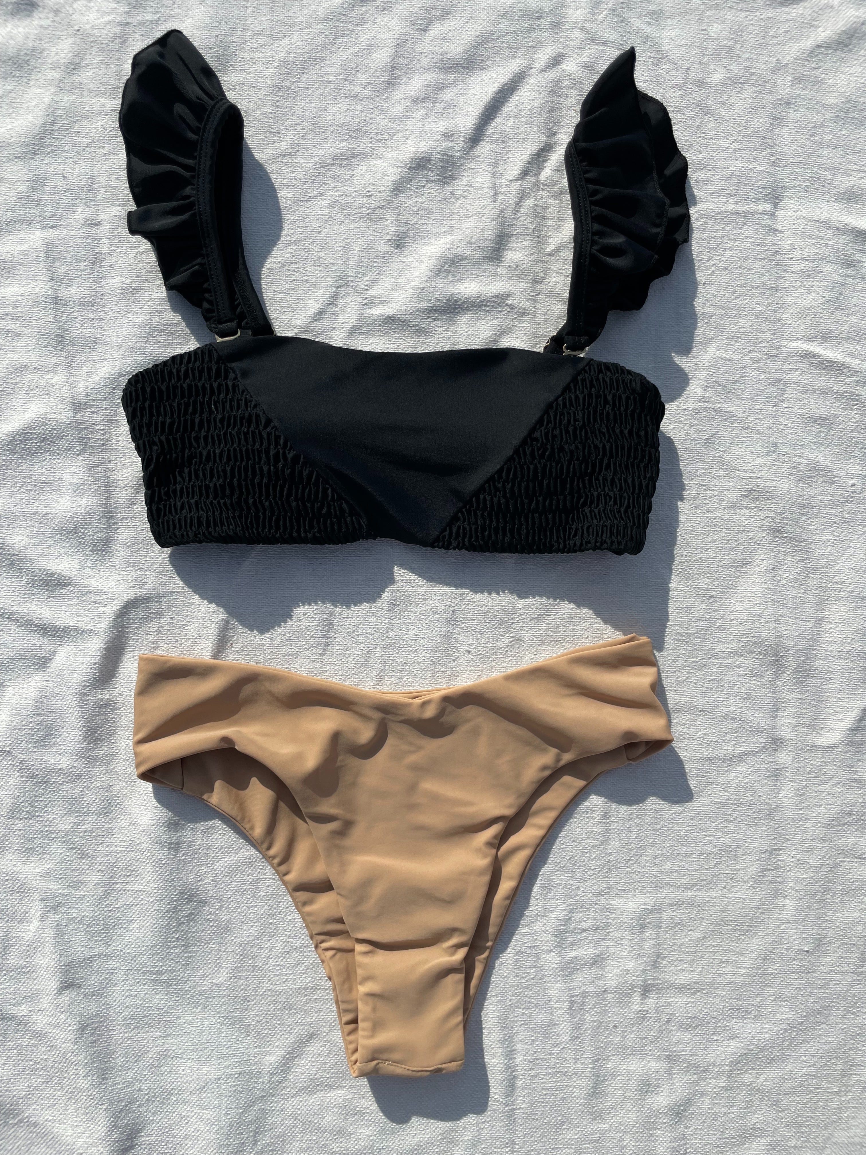 shirring 3way bikini【black×skin】