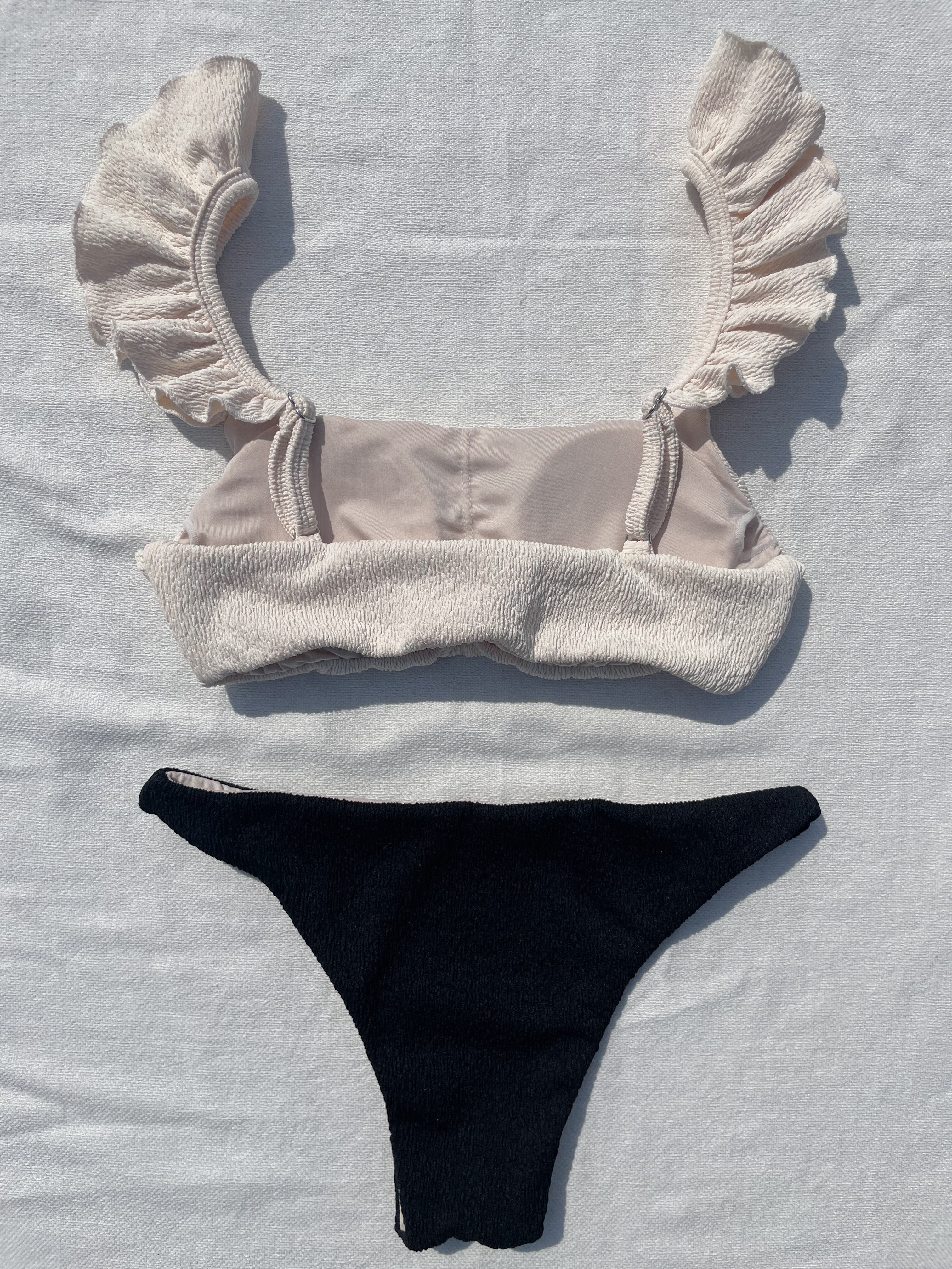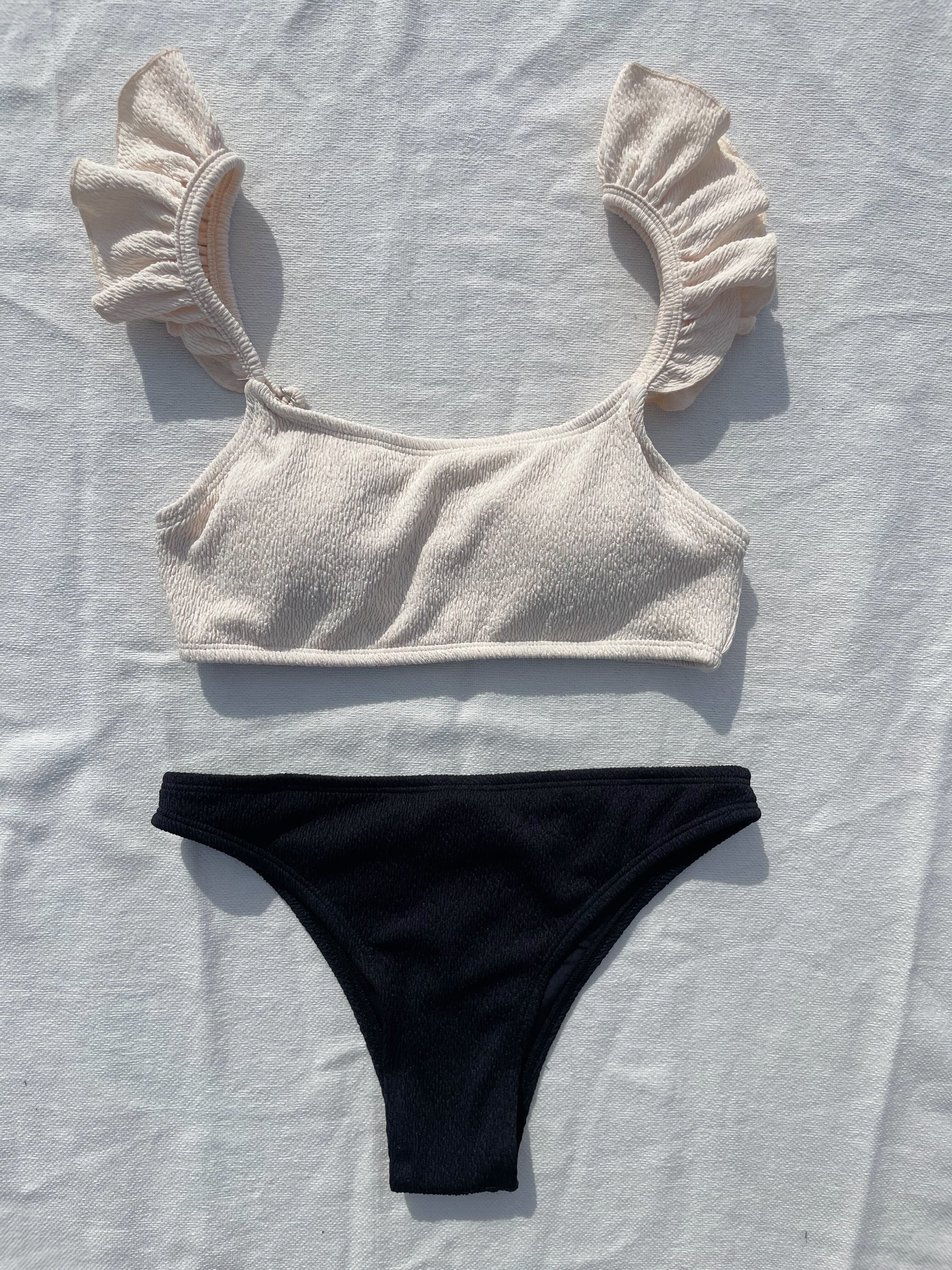 stretch frill bikini【ivory×black】
