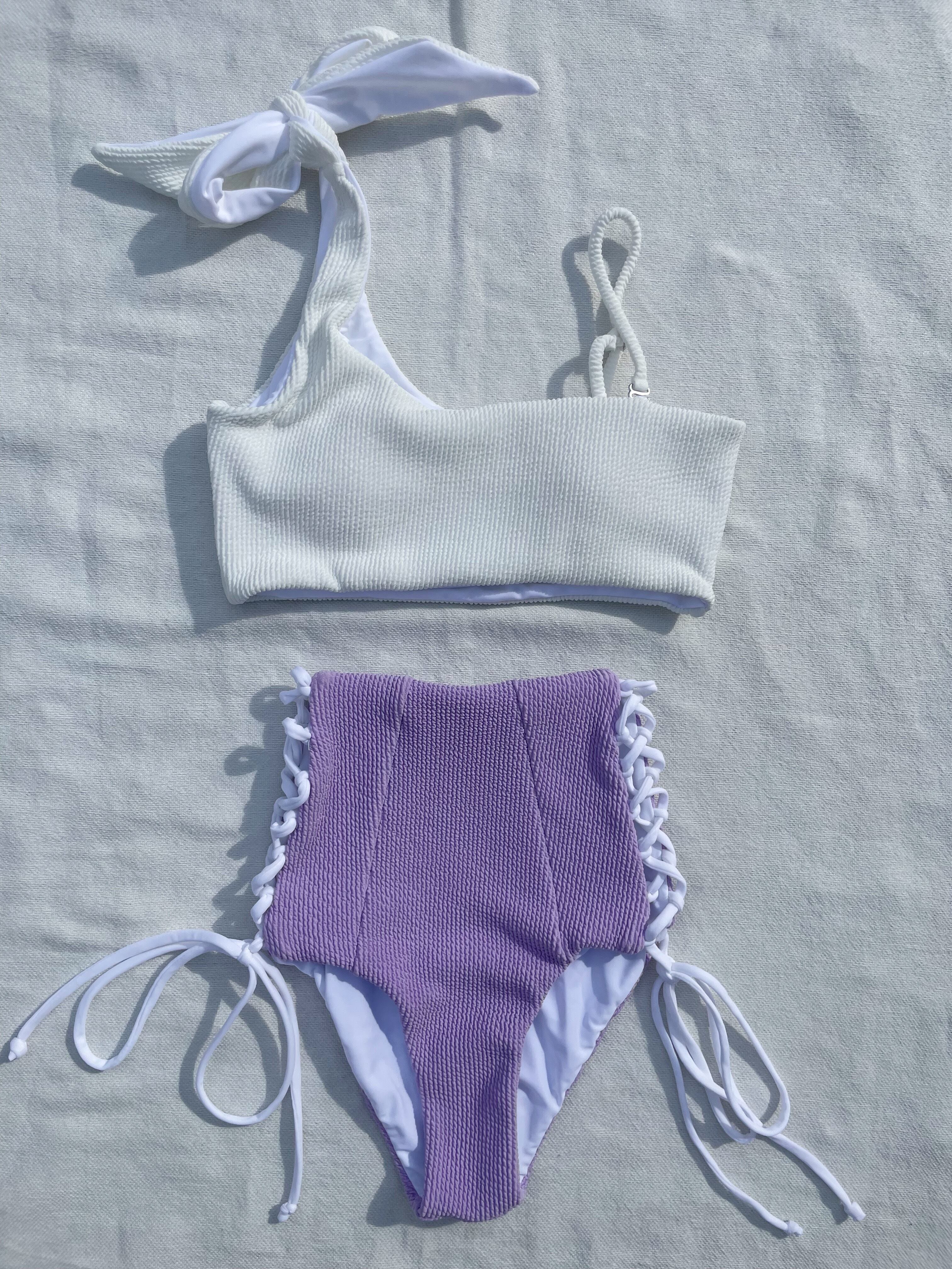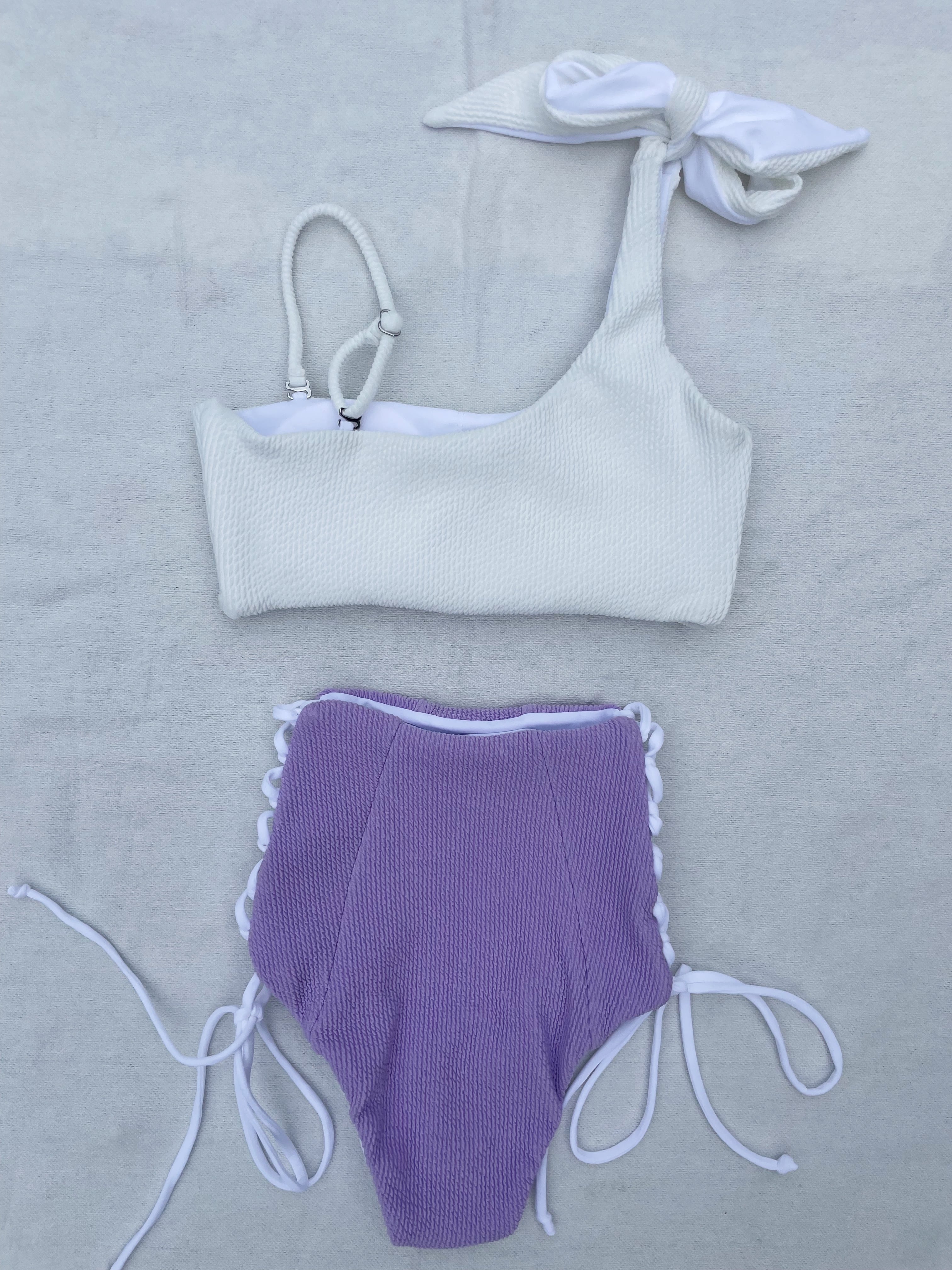 MILIMILI-one shoulder high waist reversible bikini【white×pale Iris】
