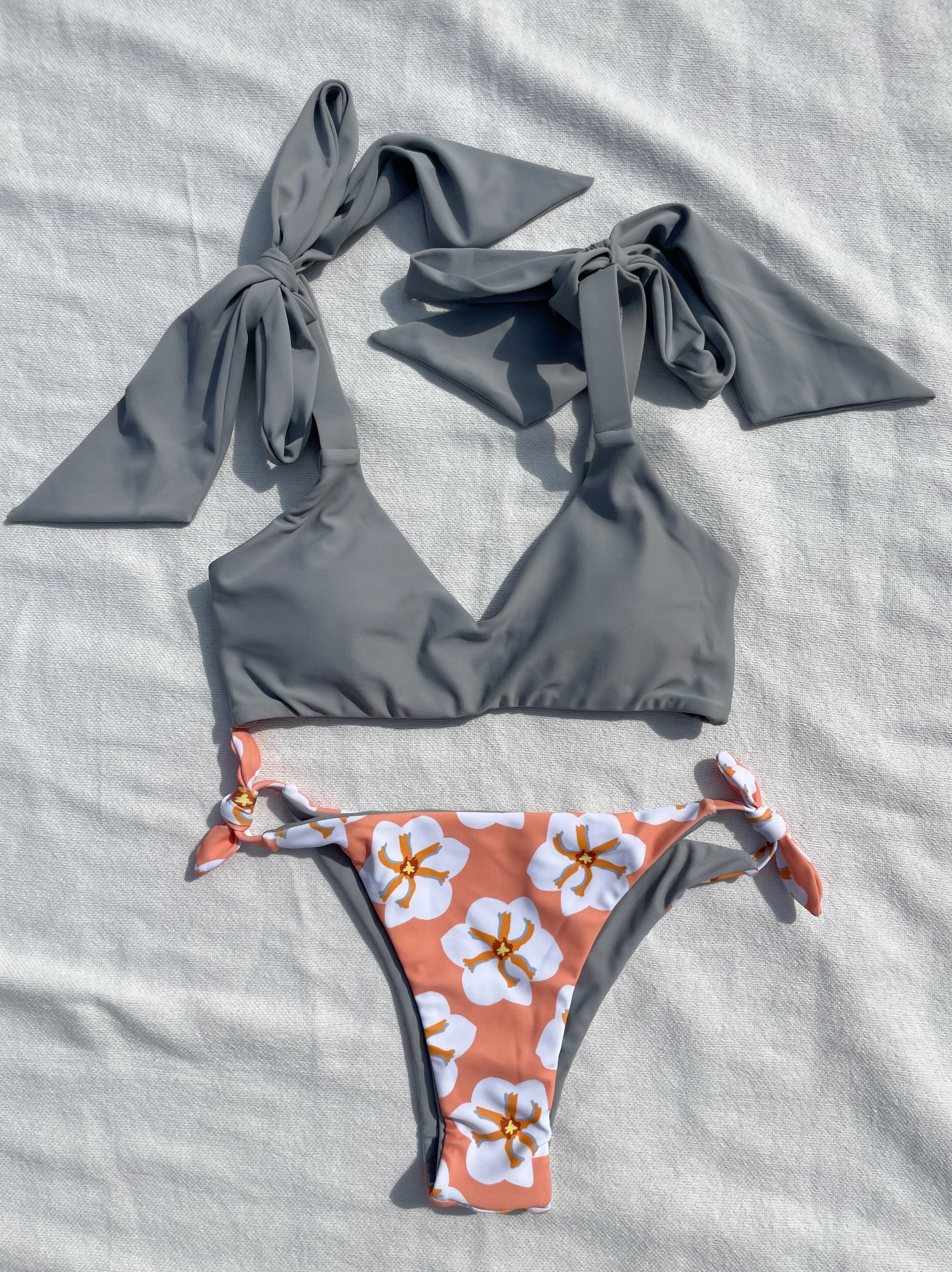 shoulder ribbon simple bikini【true gray×mango passion】