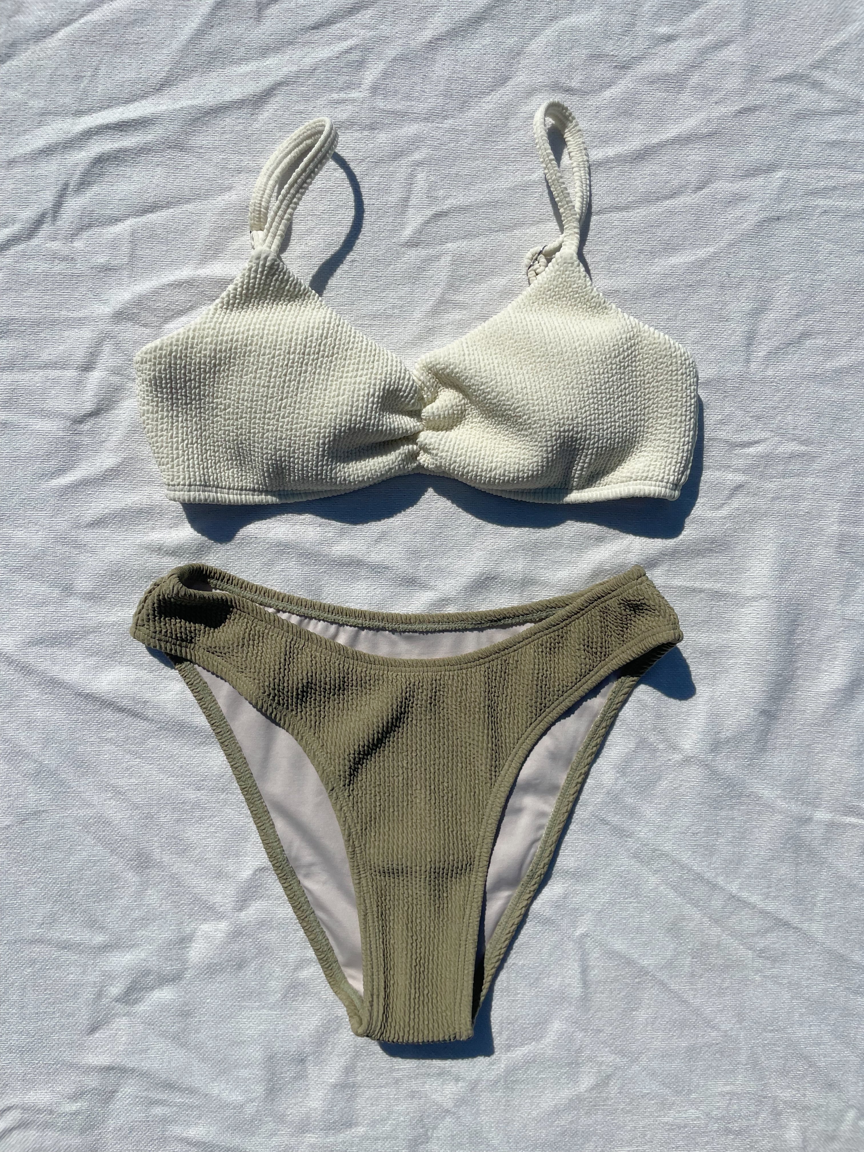 triangle simple Bikini【moss green×ivory】