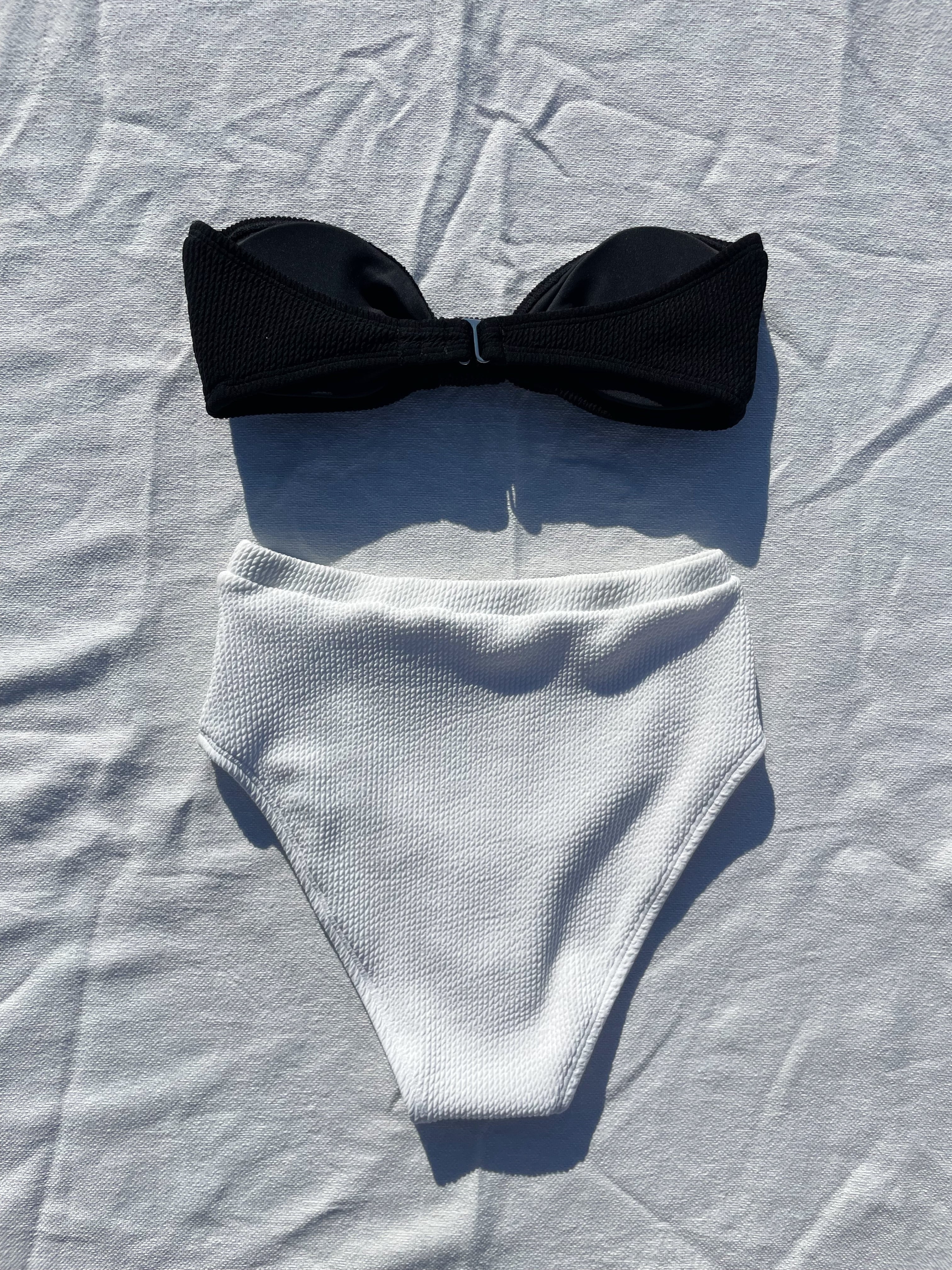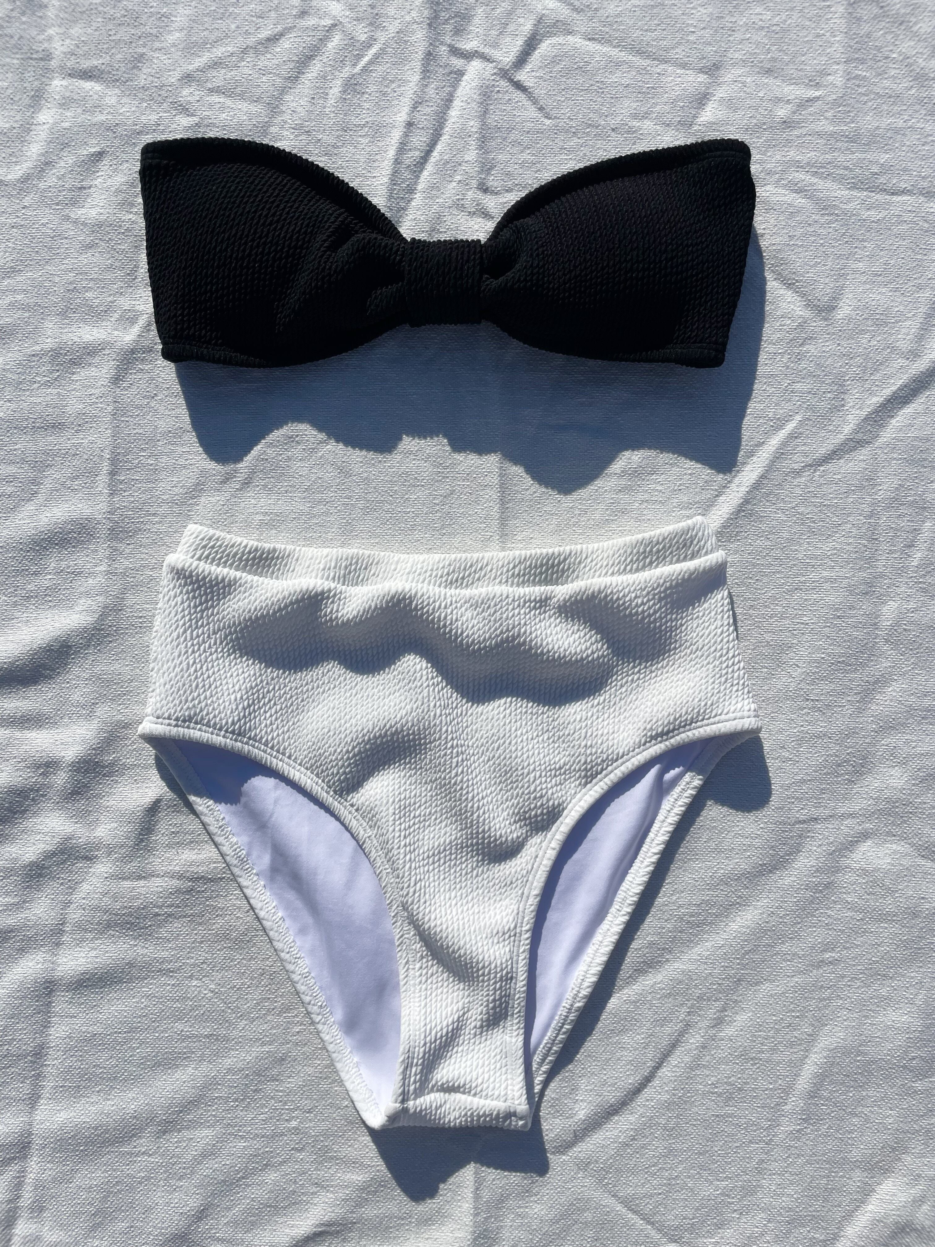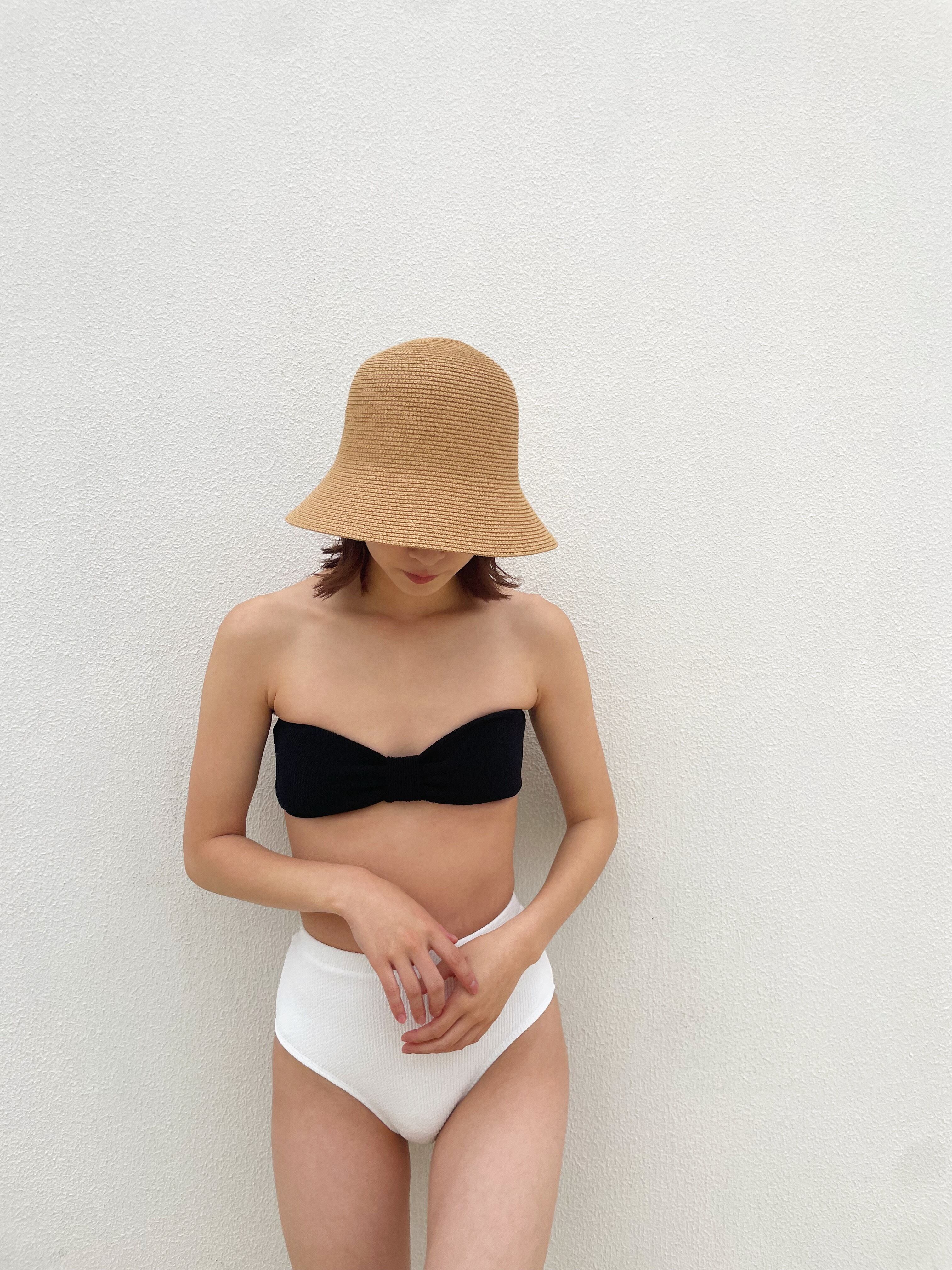 ribbon bund Bikini【black×White】